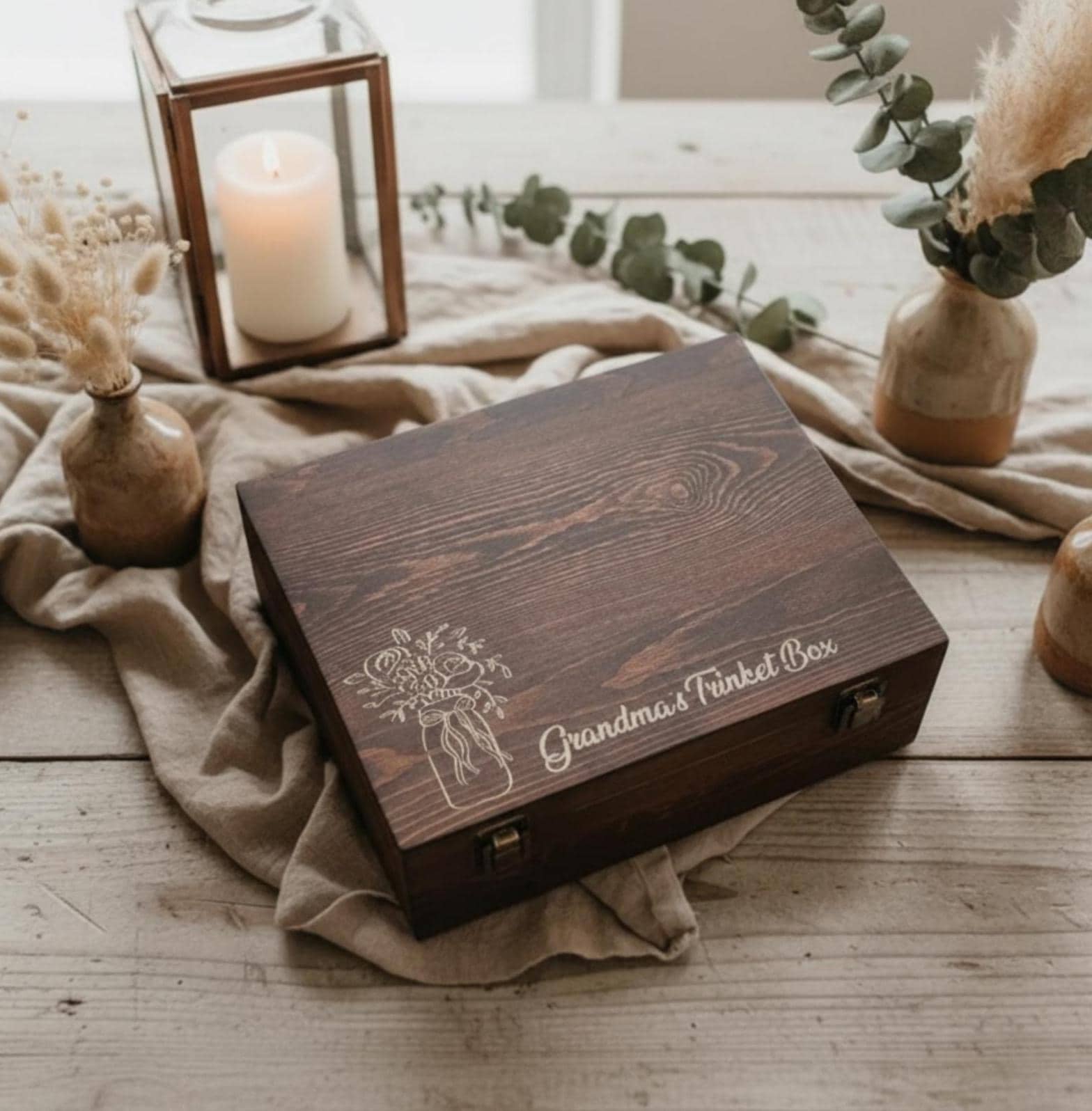 Order your personalized wooden keepsake box today and give the gift of heartfelt craftsmanship!