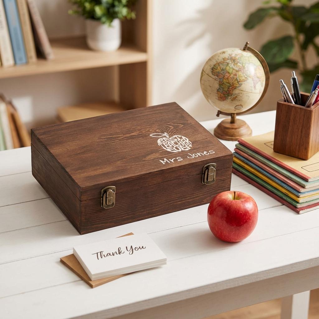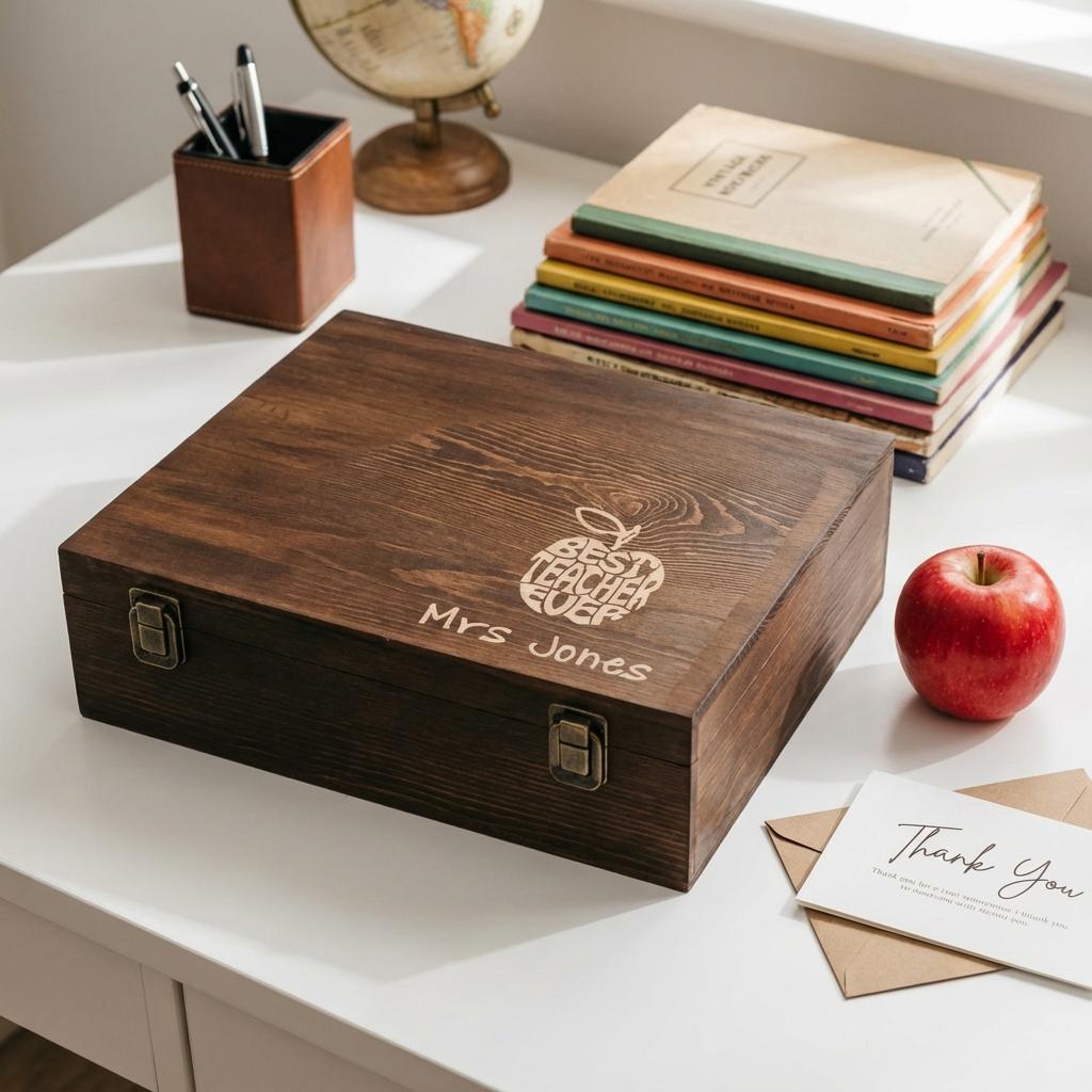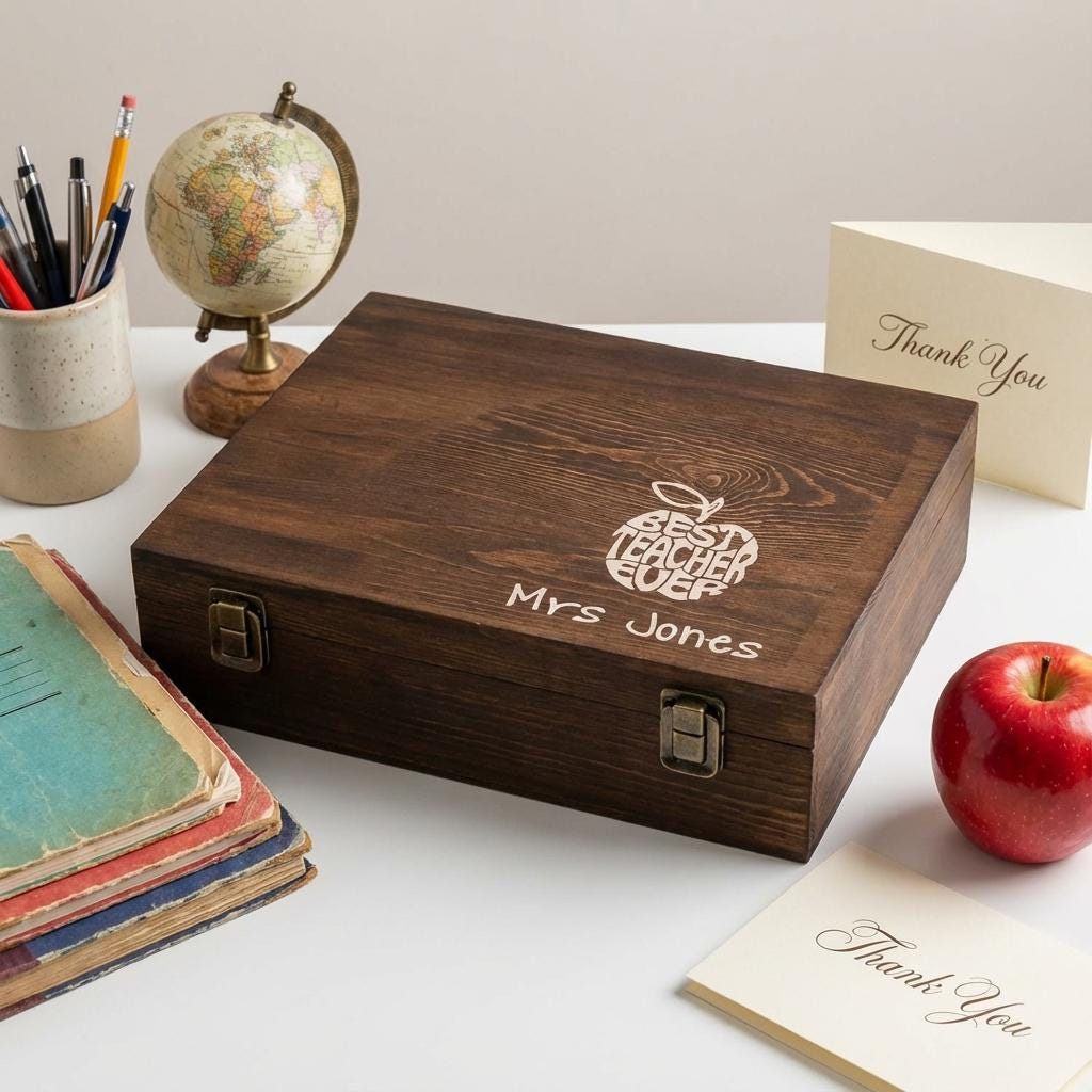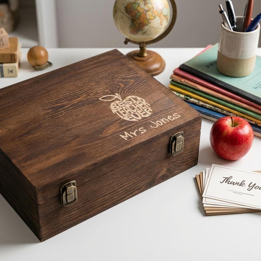 Teacher Appreciation Gift | Personalized Wooden Box & "Best Teacher Ever" Memory Keepsake