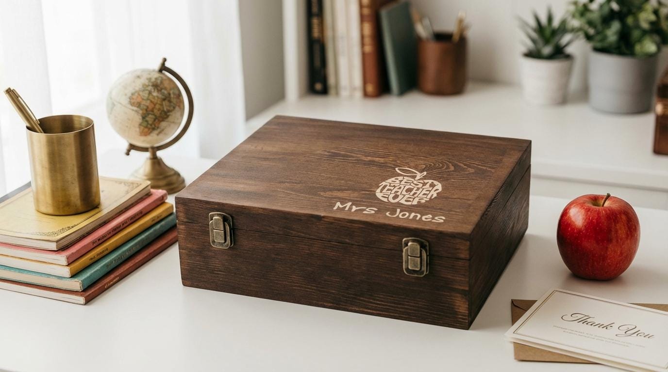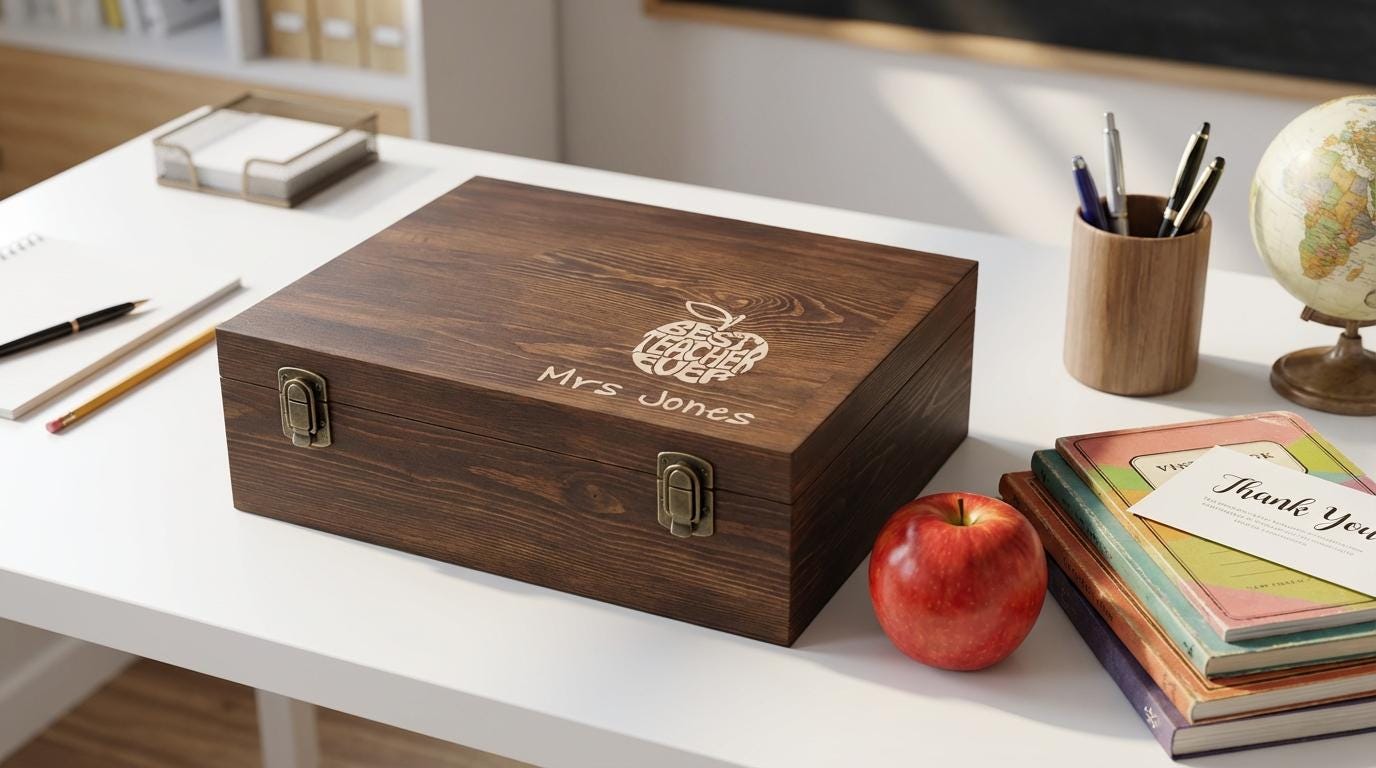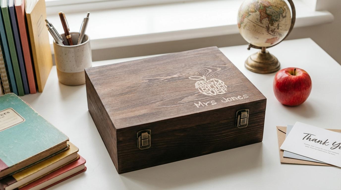 Teacher Appreciation Gift | Personalized Wooden Box & "Best Teacher Ever" Memory Keepsake