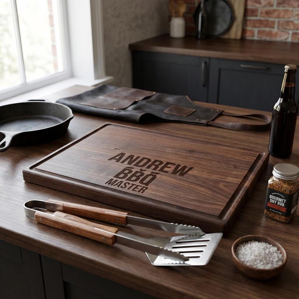 Personalized Charcuterie Board: Engraved Wood Cutting Board, BBQ Master Gift