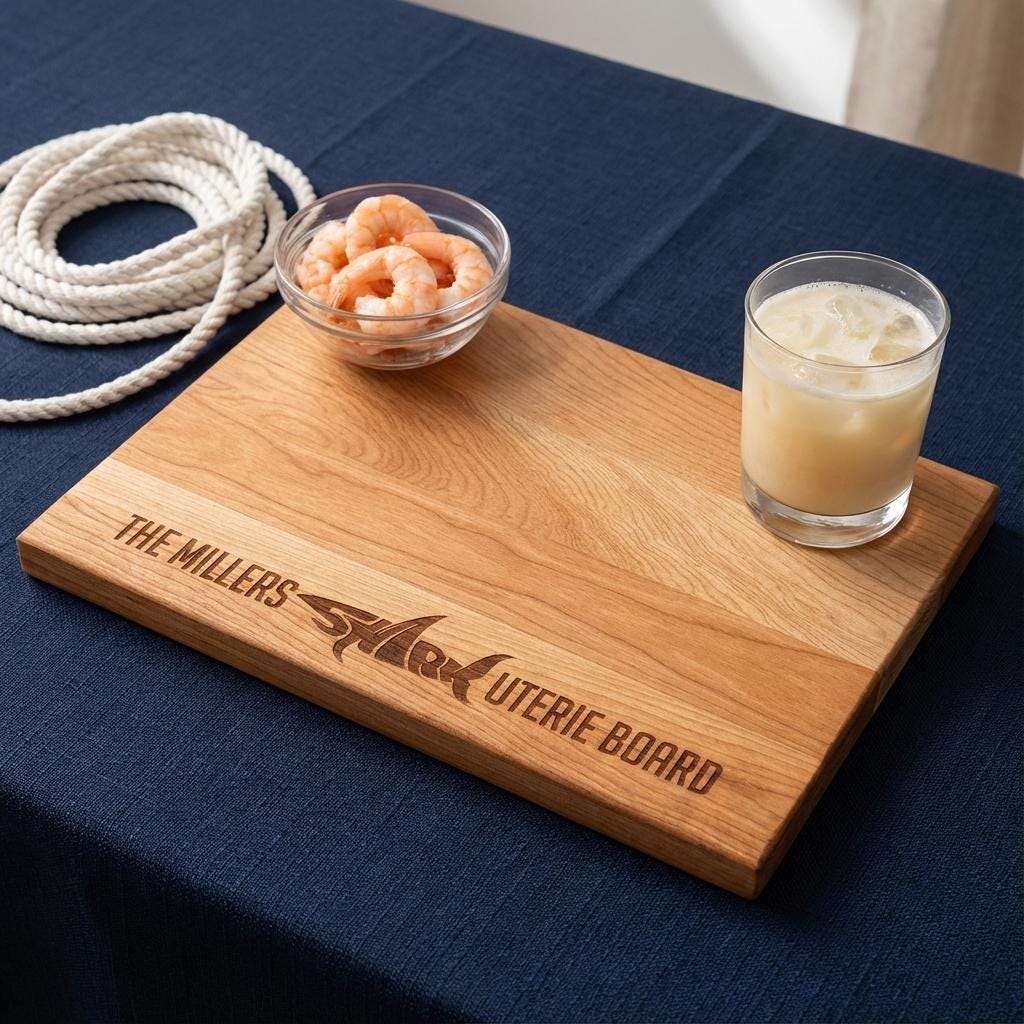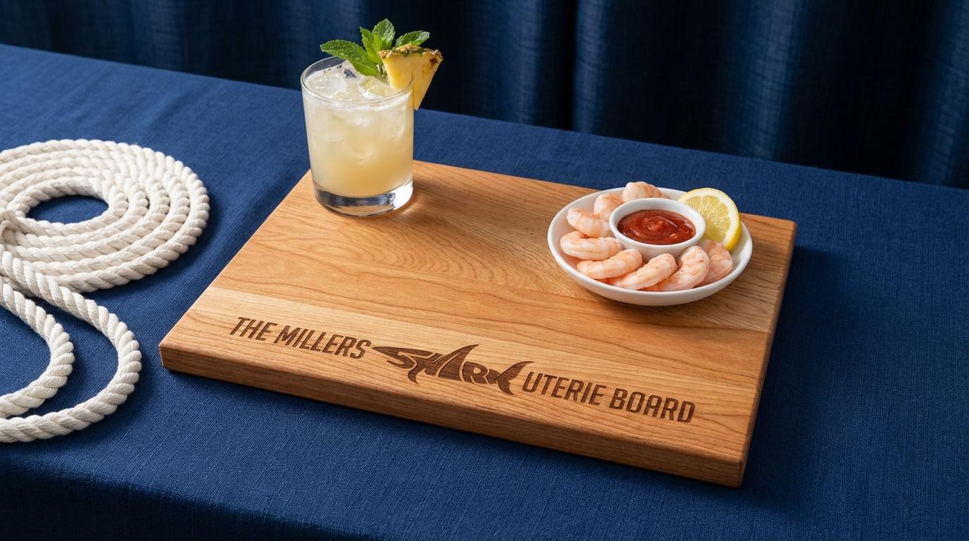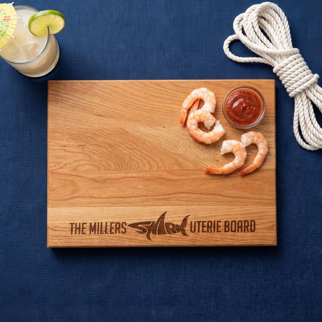 Personalized Charcuterie Board – Shark Lover Couple: Custom Cutting Board | Shark Design, Ocean, Beach Decor, Wedding, Fun Housewarming Gift