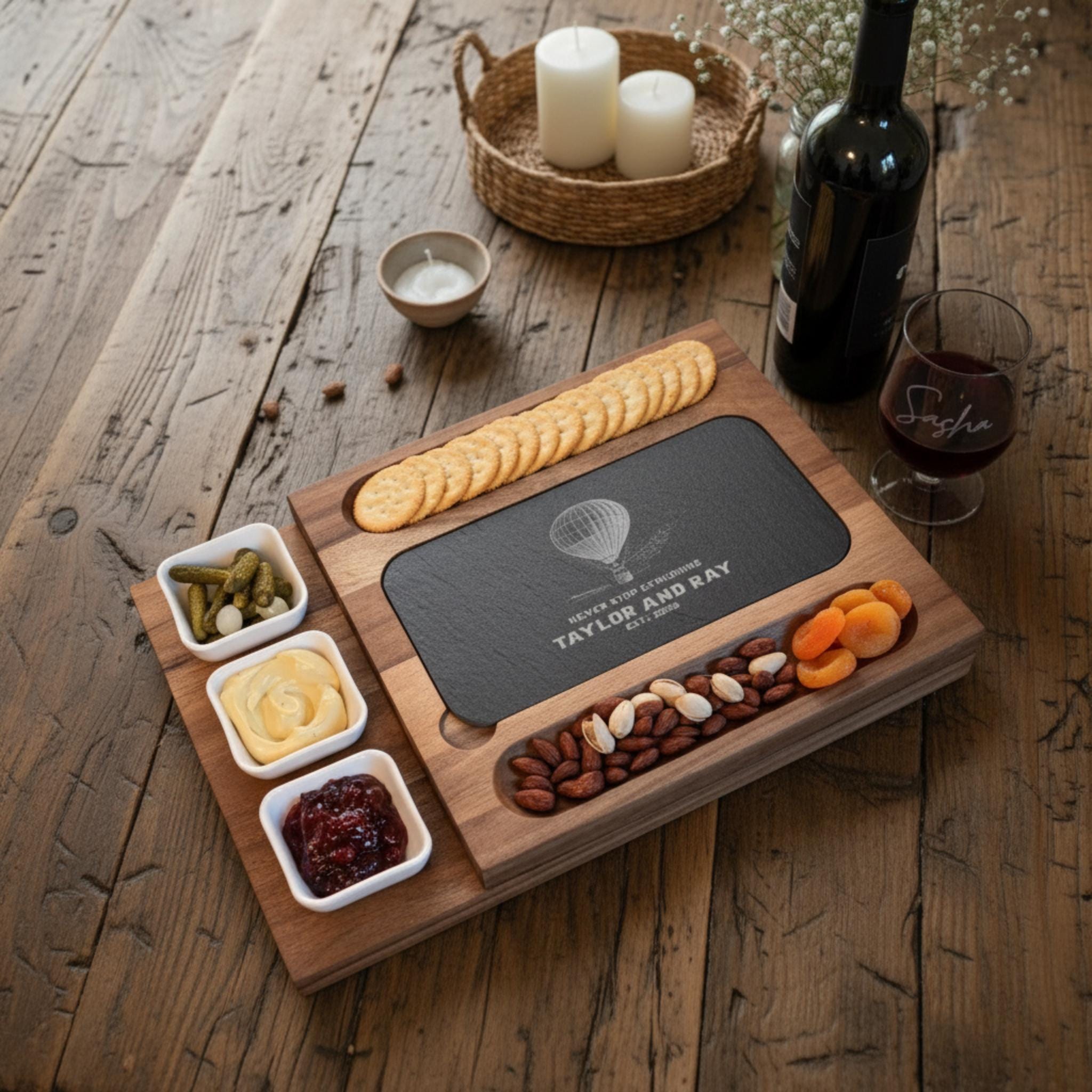 This custom-engraved acacia wood board is the perfect centerpiece for weddings, anniversaries, housewarming parties, Christmas, and any occasion where lasting memories are made.