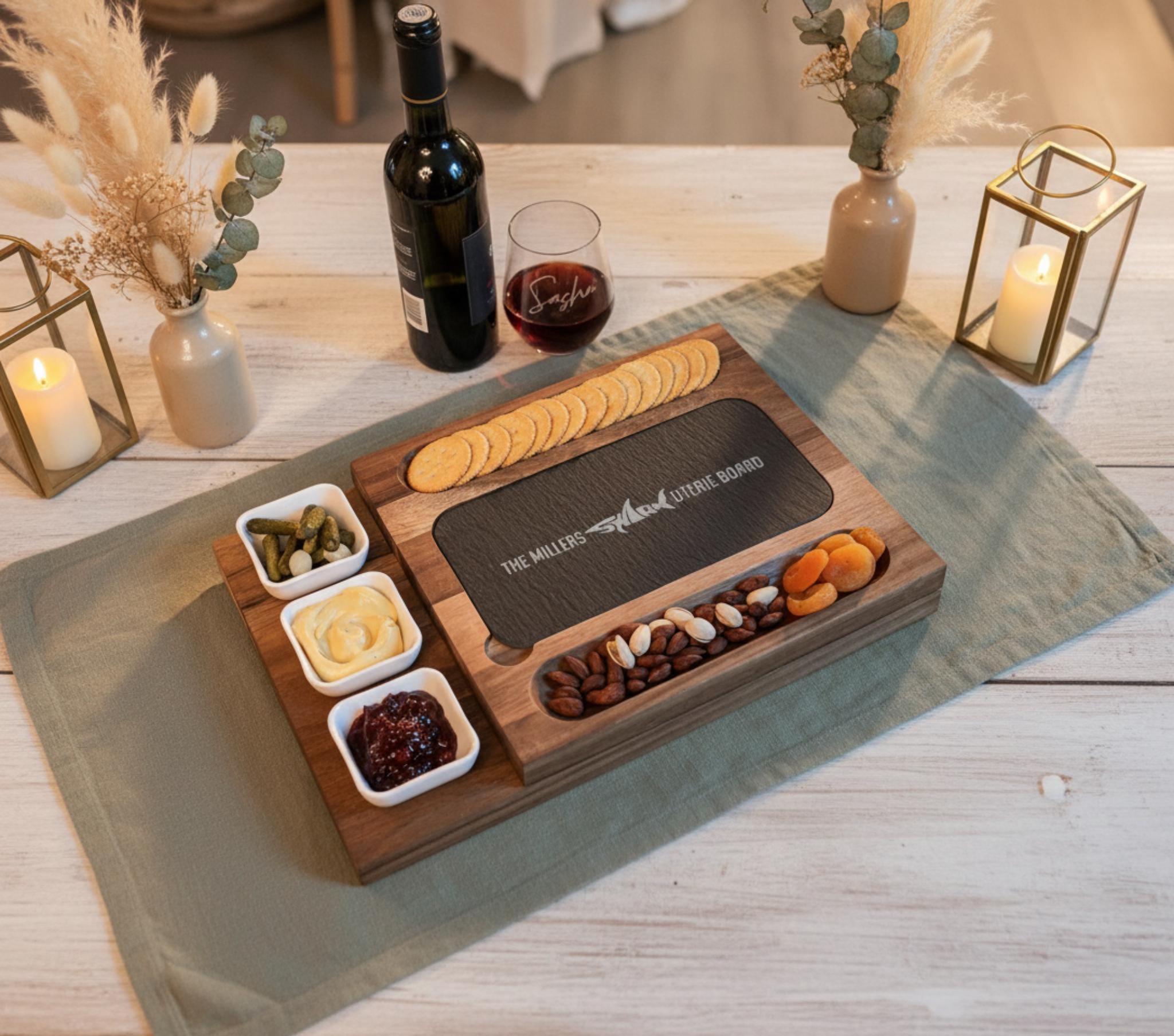 This custom-engraved acacia wood board is the perfect centerpiece for weddings, anniversaries, housewarming parties, Christmas, and any occasion where lasting memories are made.