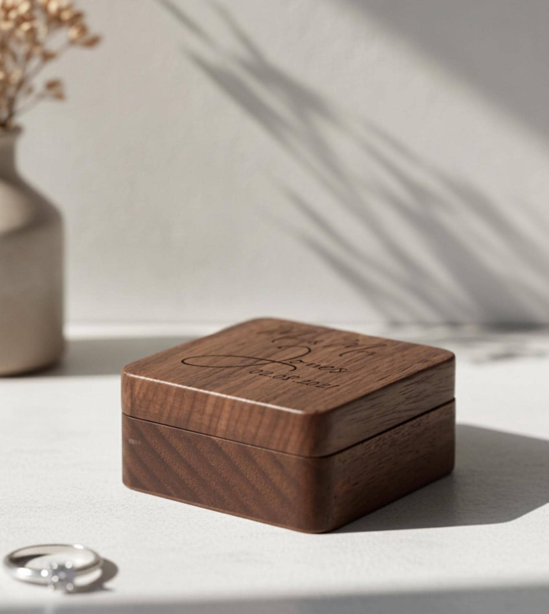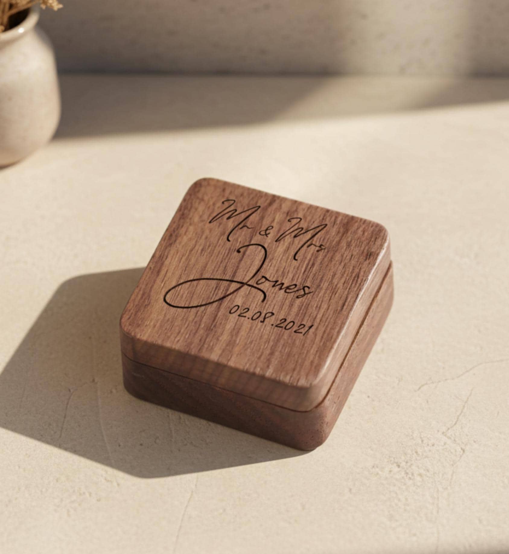 Crafted from rich walnut and precision laser-engraved with your custom text, it transforms every proposal or anniversary into a memorable keepsake.