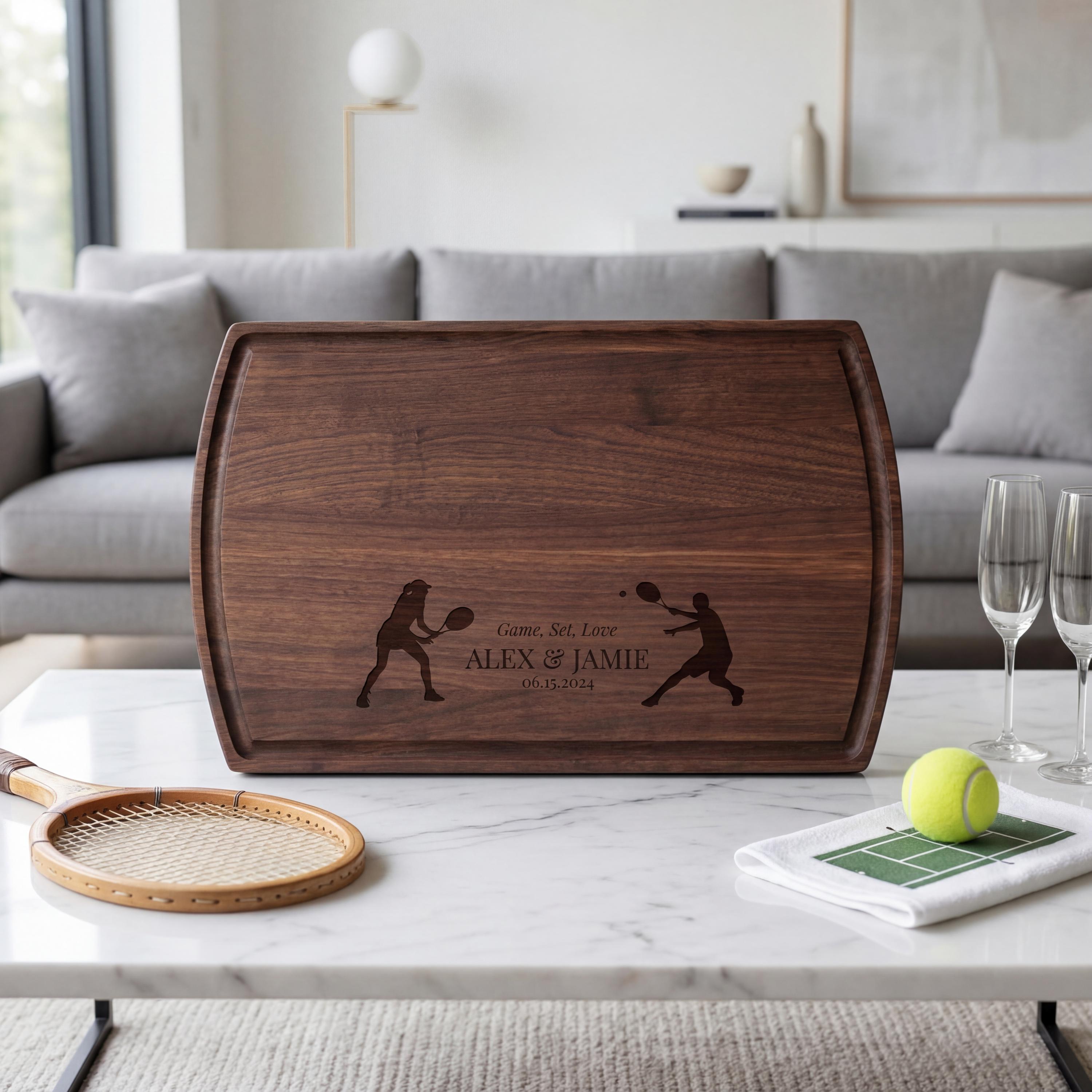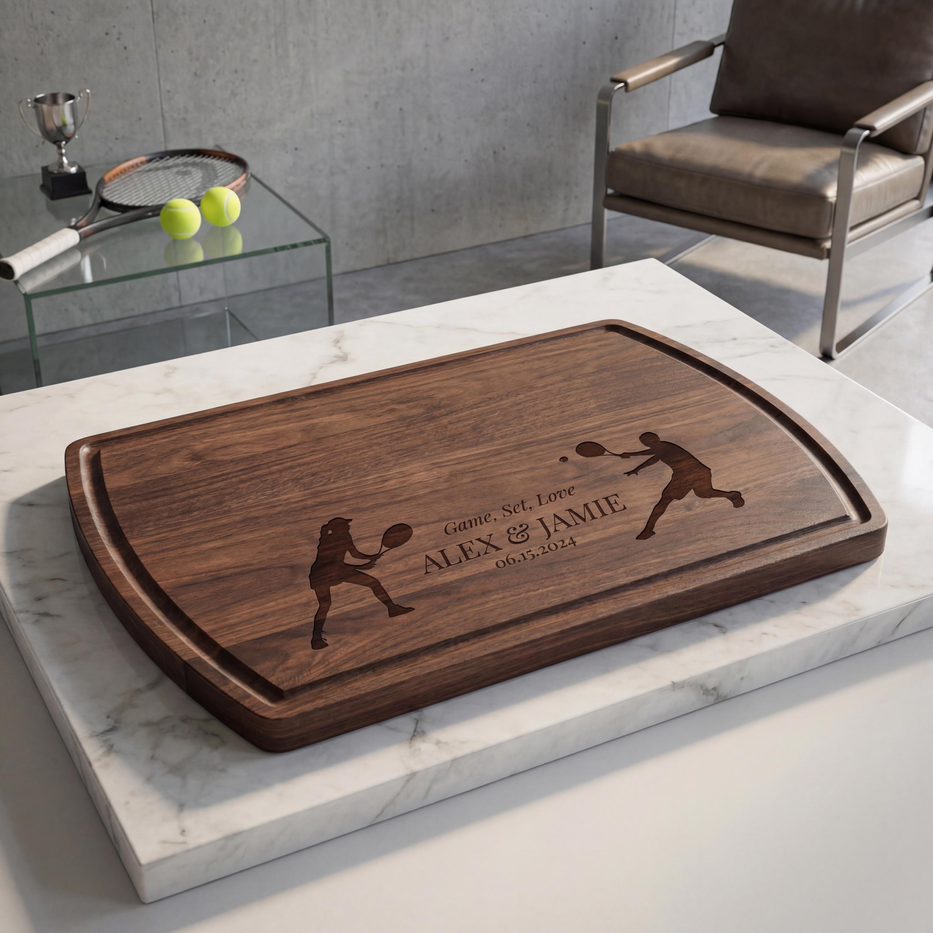 Personalized Charcuterie Board – Tennis Couple: Customized Cutting Board | Sporty Couple, Engagement, Housewarming, Wedding, Hosting Gift
