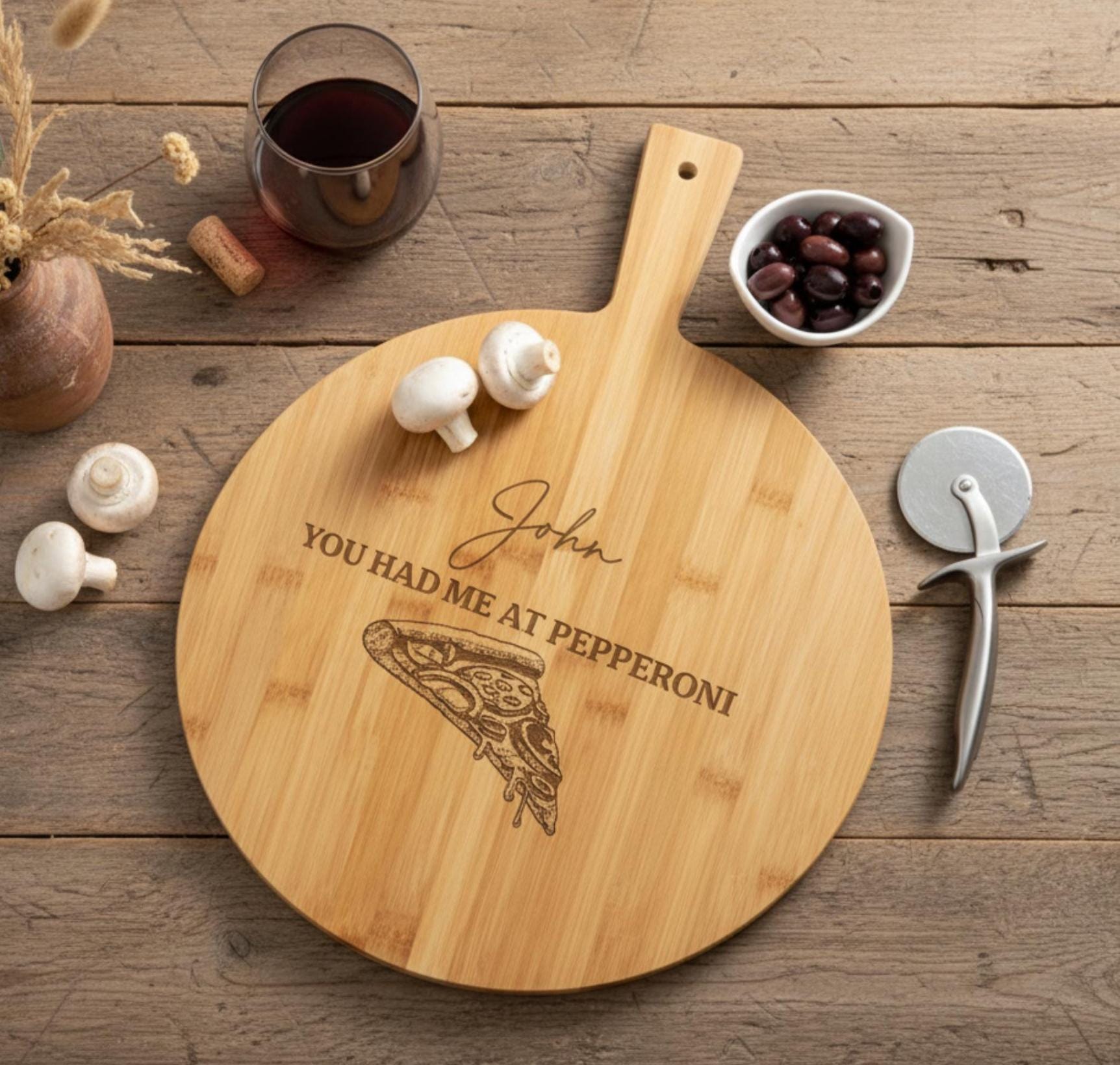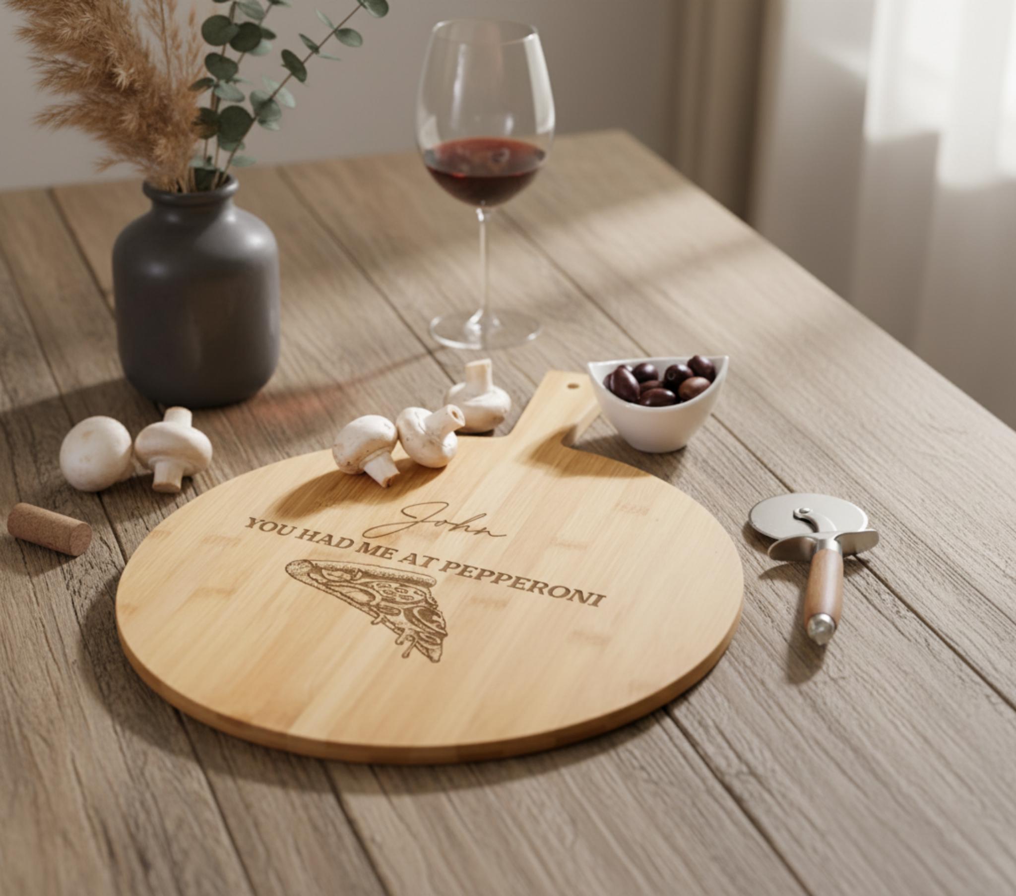 These Personalized Pizza Boards are designed to transform every gathering into a cherished memory. Meticulously crafted from sustainable bamboo and laser-engraved with precision, each board is not just a kitchen tool—it’s a timeless treasure bursting with sentiment and artisanal charm.