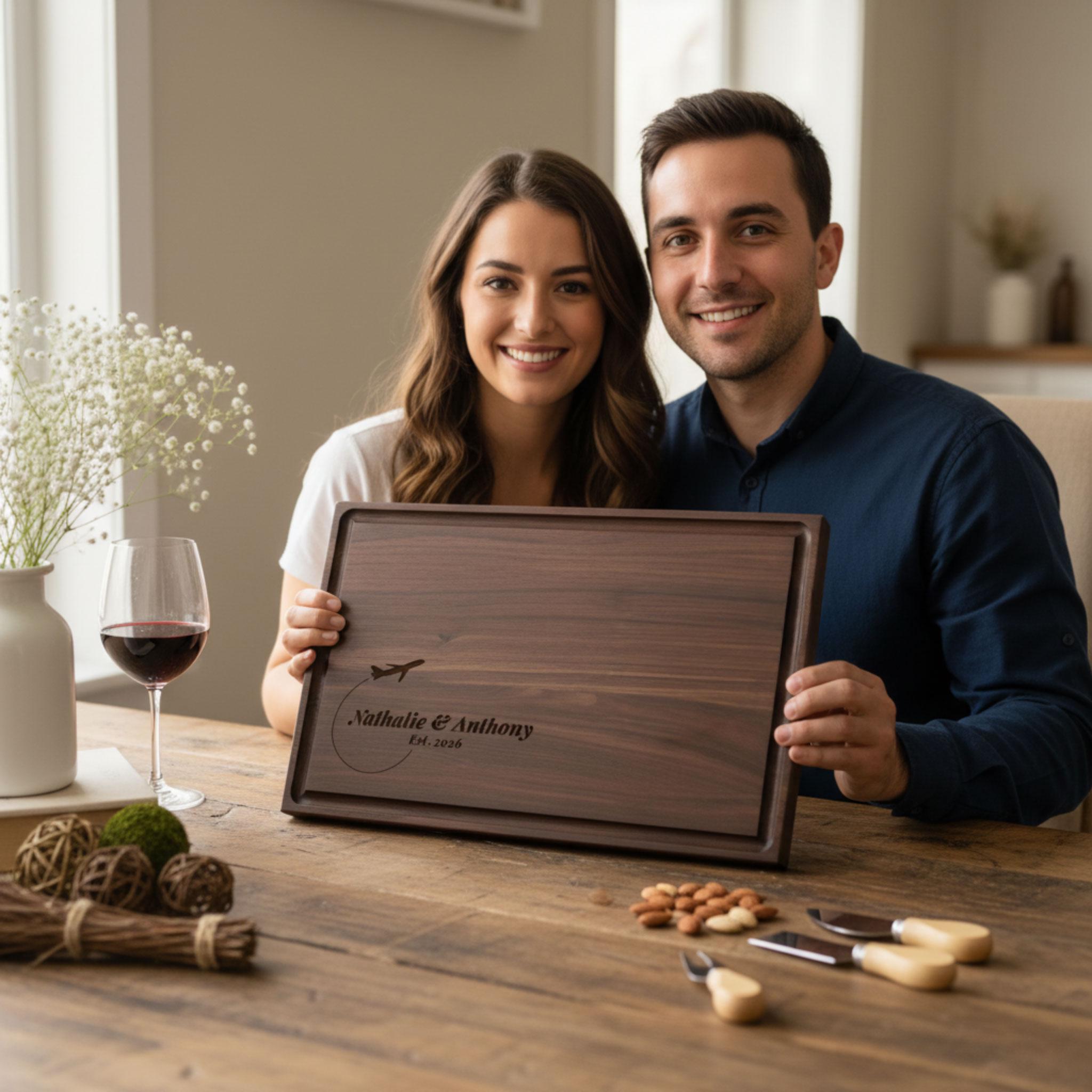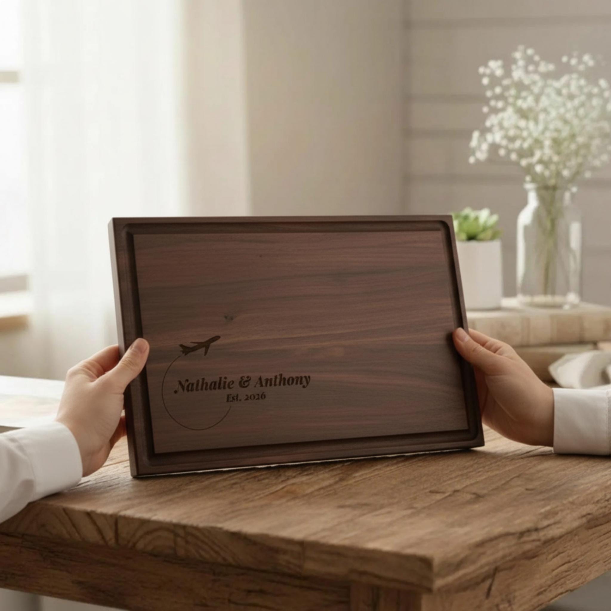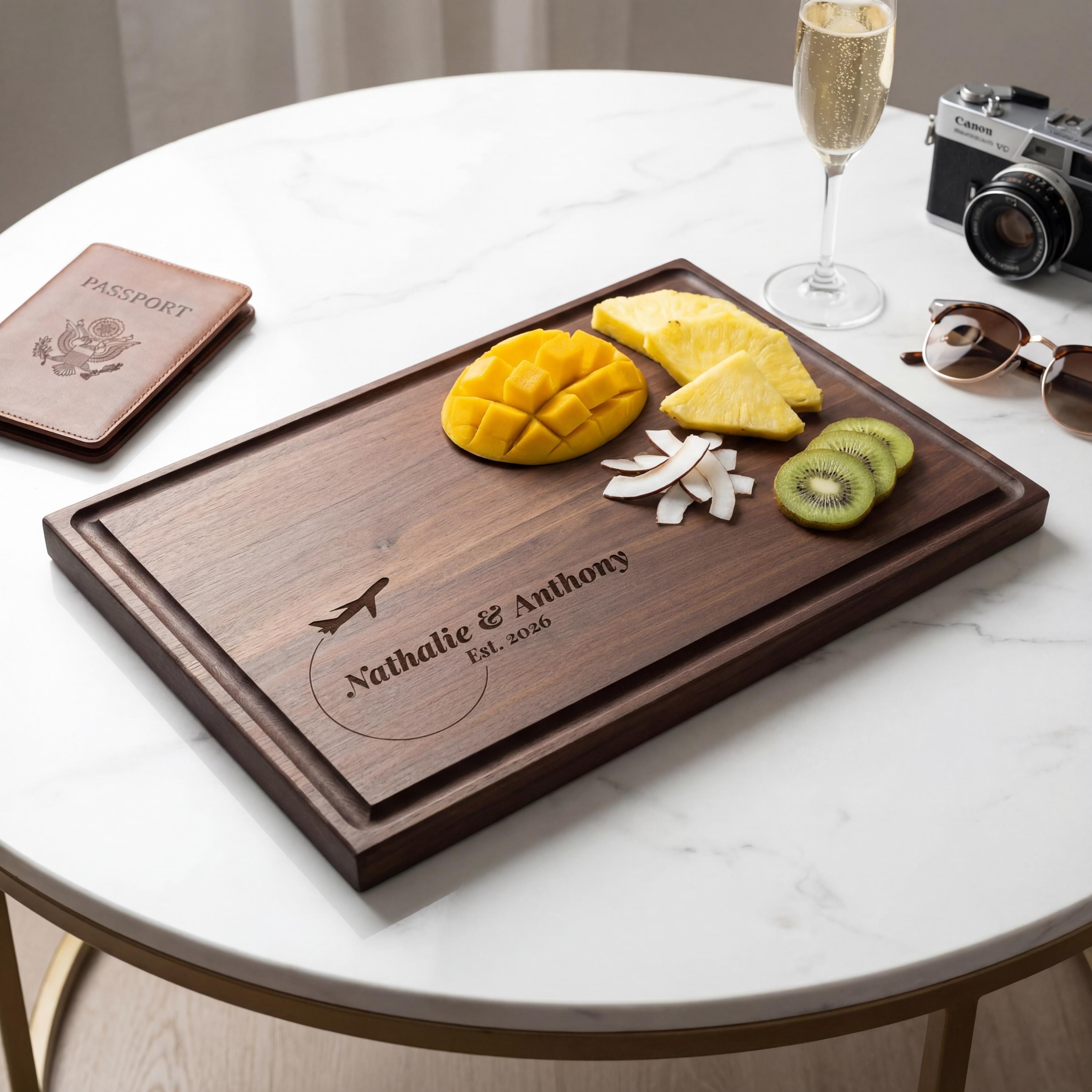 Personalized Charcuterie Board – Travel Lover Couple: Custom Cutting Board | Destination Wedding, Airplane, Flying, Pilot, Explorer Gift