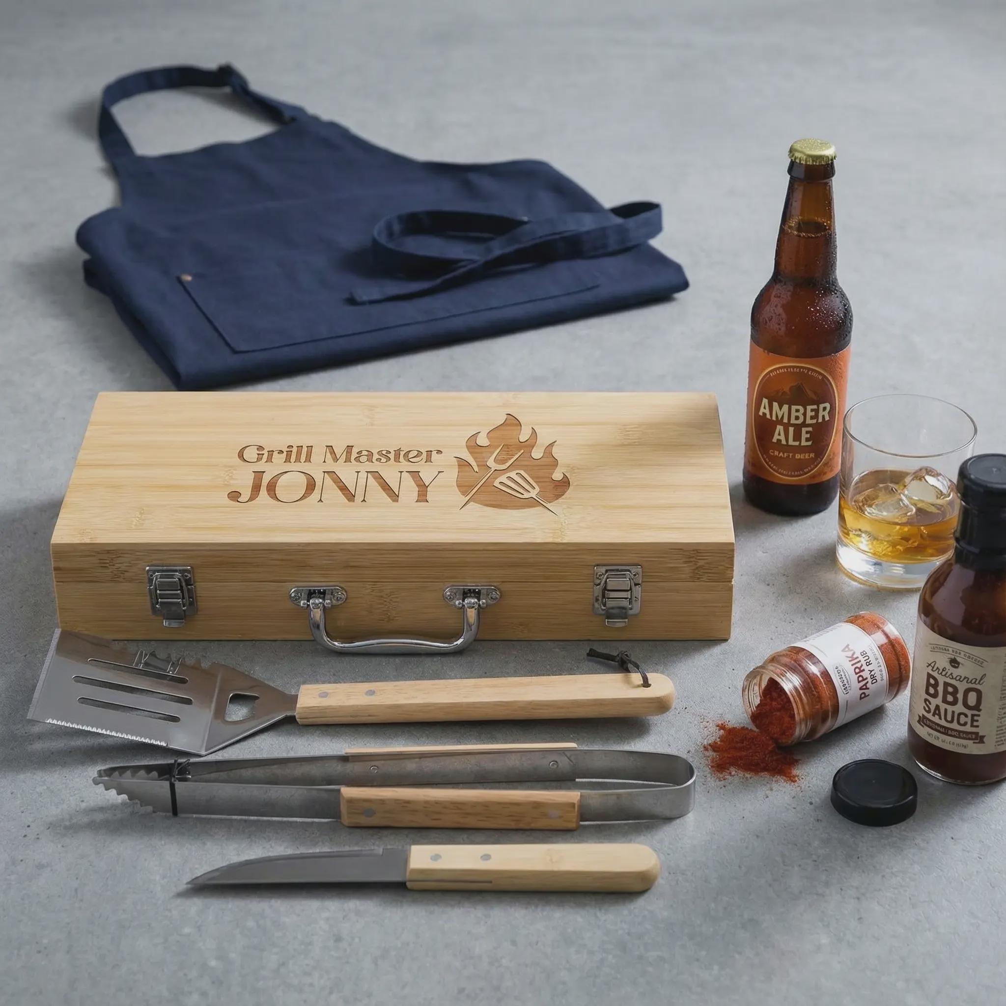 These Personalized Engraved BBQ Sets are designed to elevate your grill game while adding a personal touch to every cookout. Perfect for BBQ enthusiasts and grill masters, they make a thoughtful gift for Father's Day, birthdays, housewarmings, Christmas, or any special occasion.
