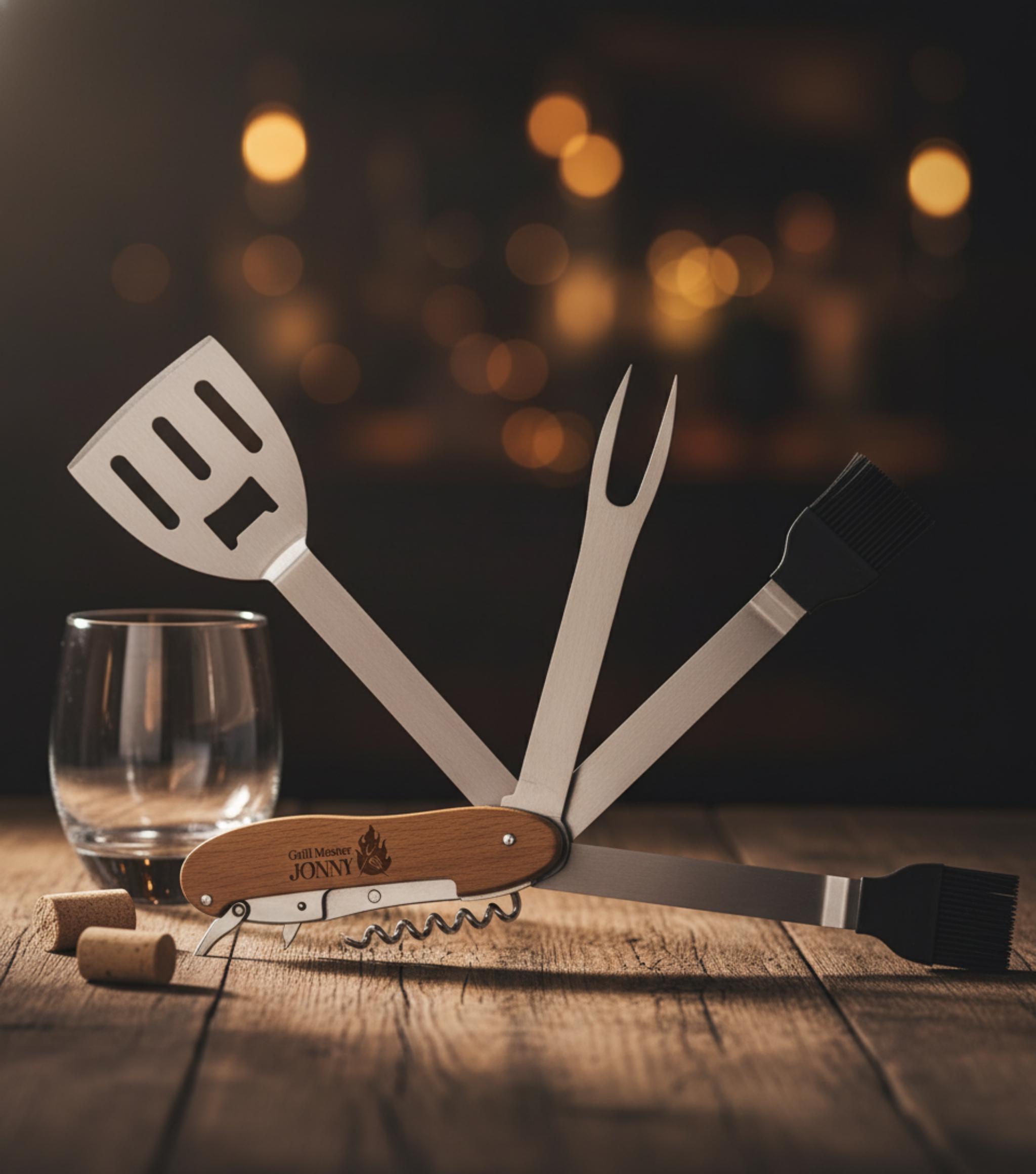 Personalized Grill Accessories – Customized Grill Master Multi Tool for BBQ Lovers, Father’s Day, Grandpa, Husband, and Christmas Gifts
