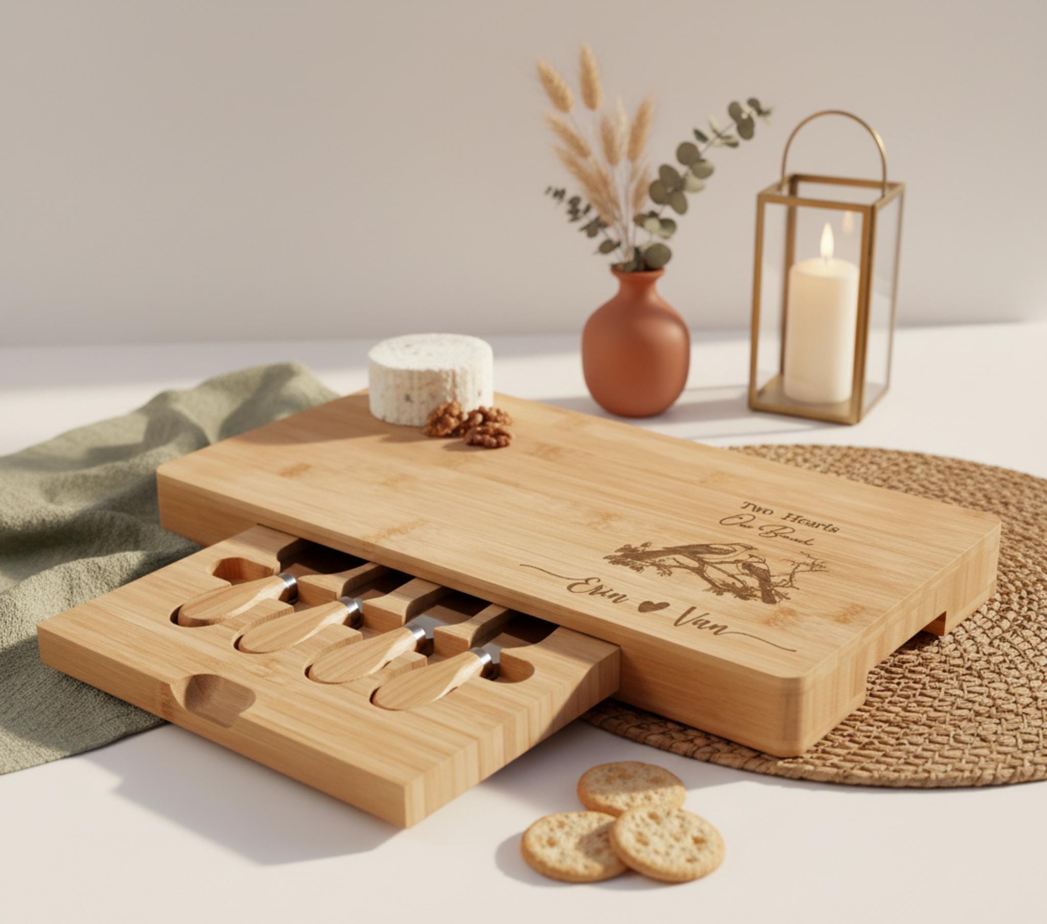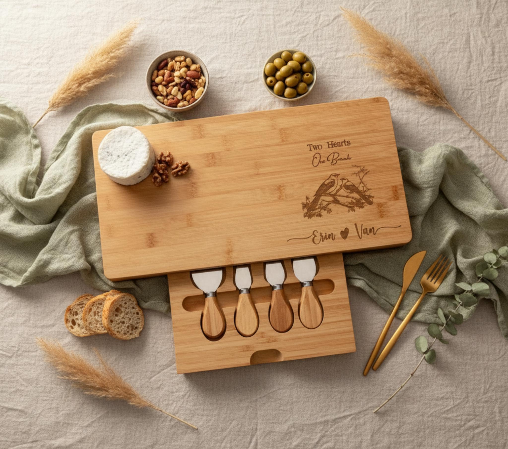 Elevate every occasion with this personalized cheese board set that effortlessly blends art, function, and sentiment. Click “Add to Cart” now to make your special moments unforgettable!