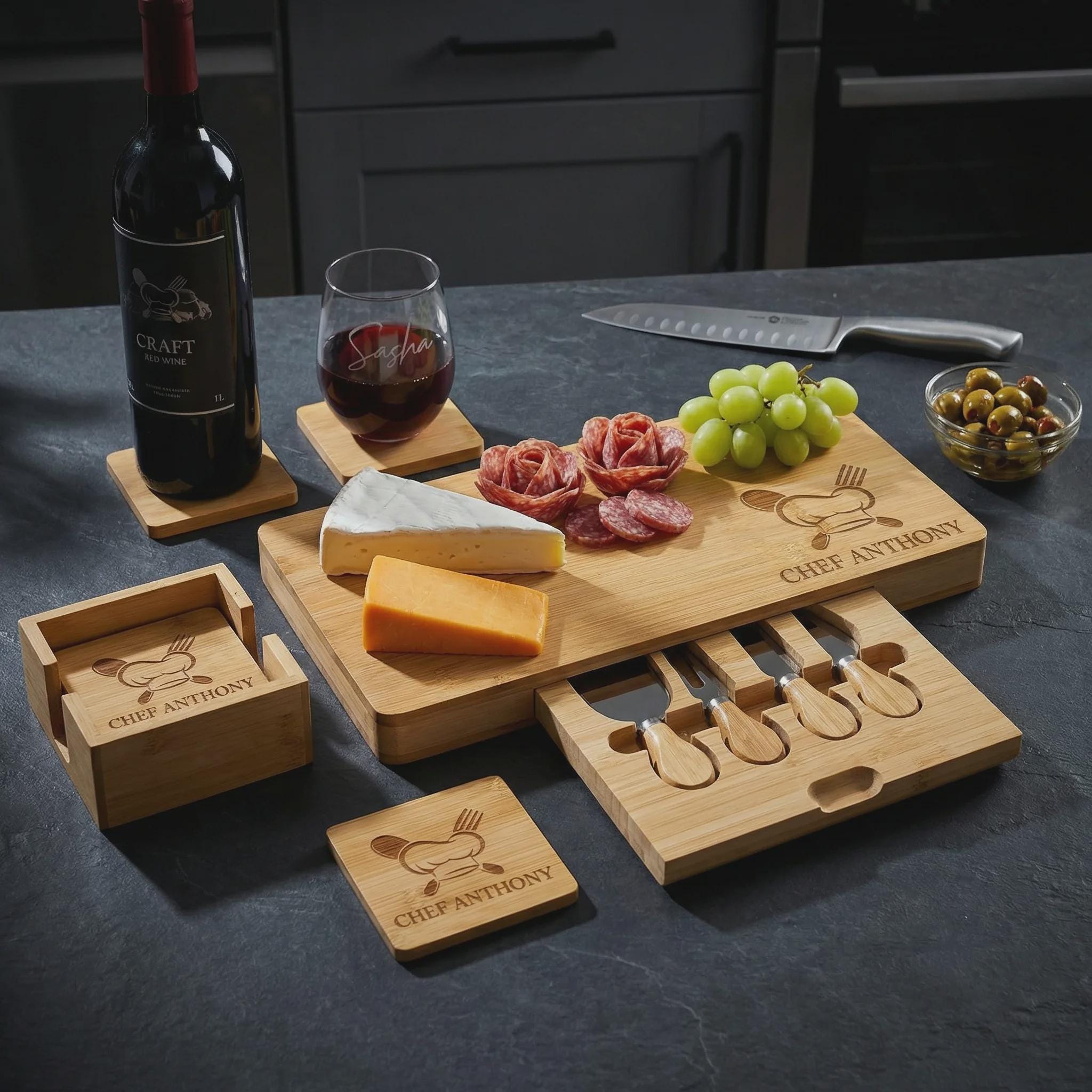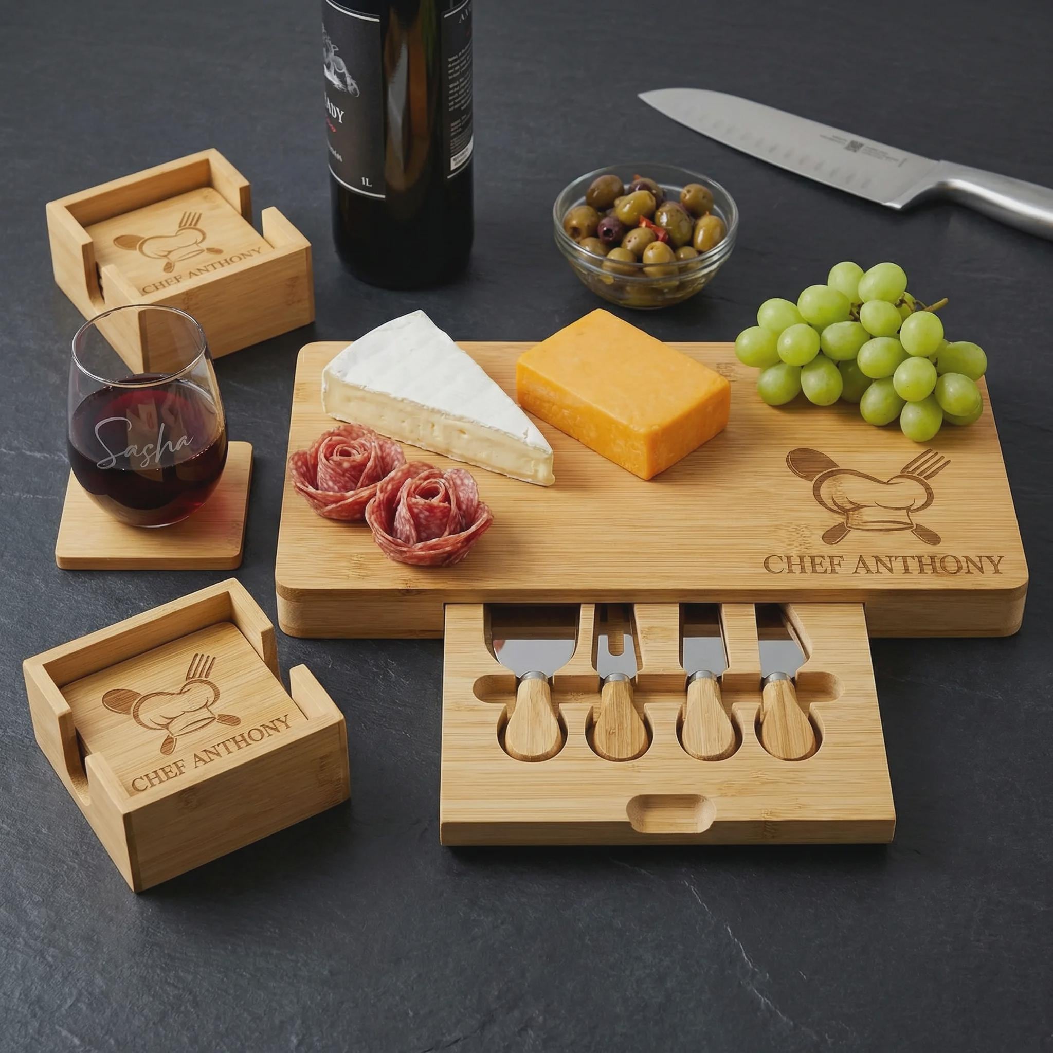 Personalized Bamboo Charcuterie Board Set | Grill Master Gift for Men, Custom BBQ Chef Present