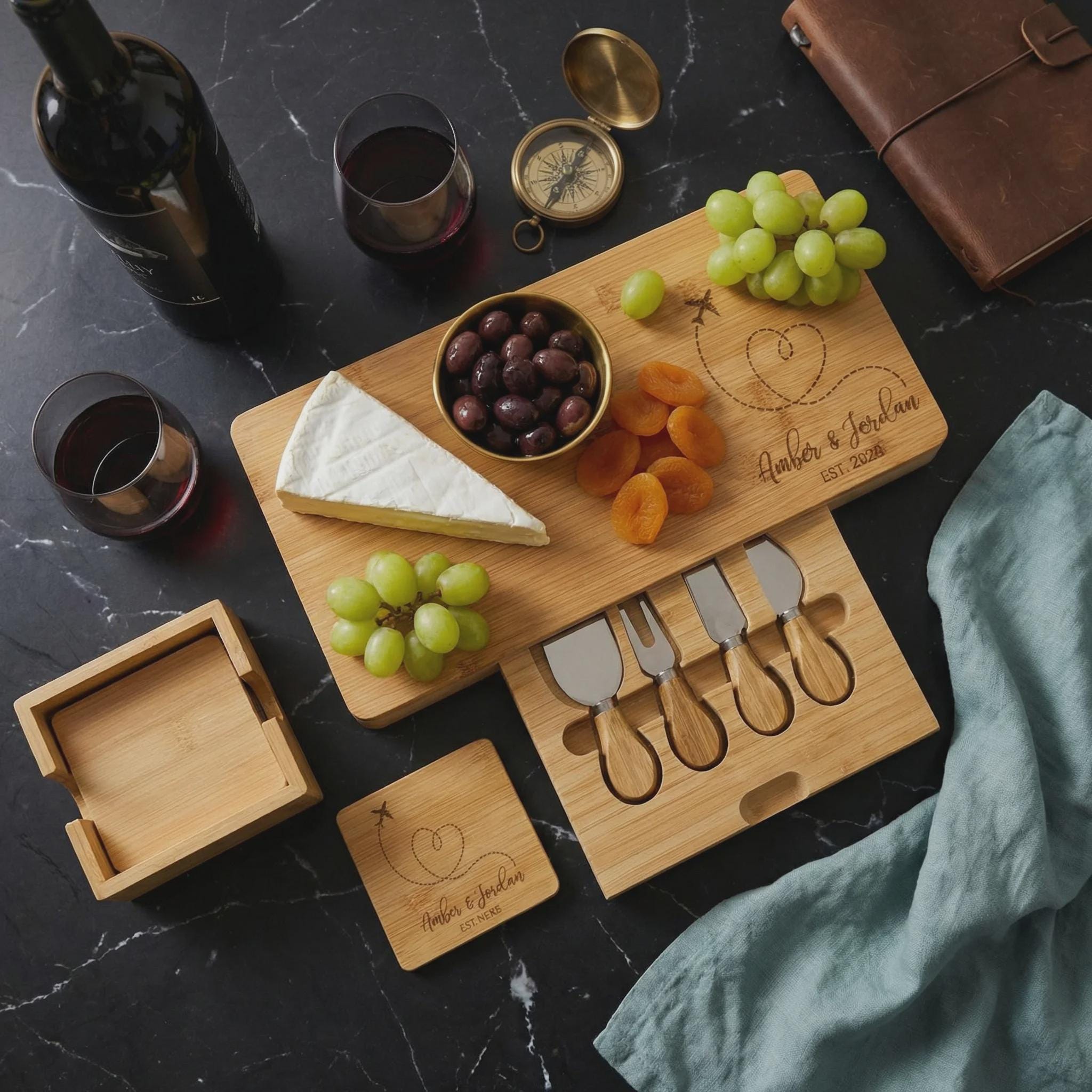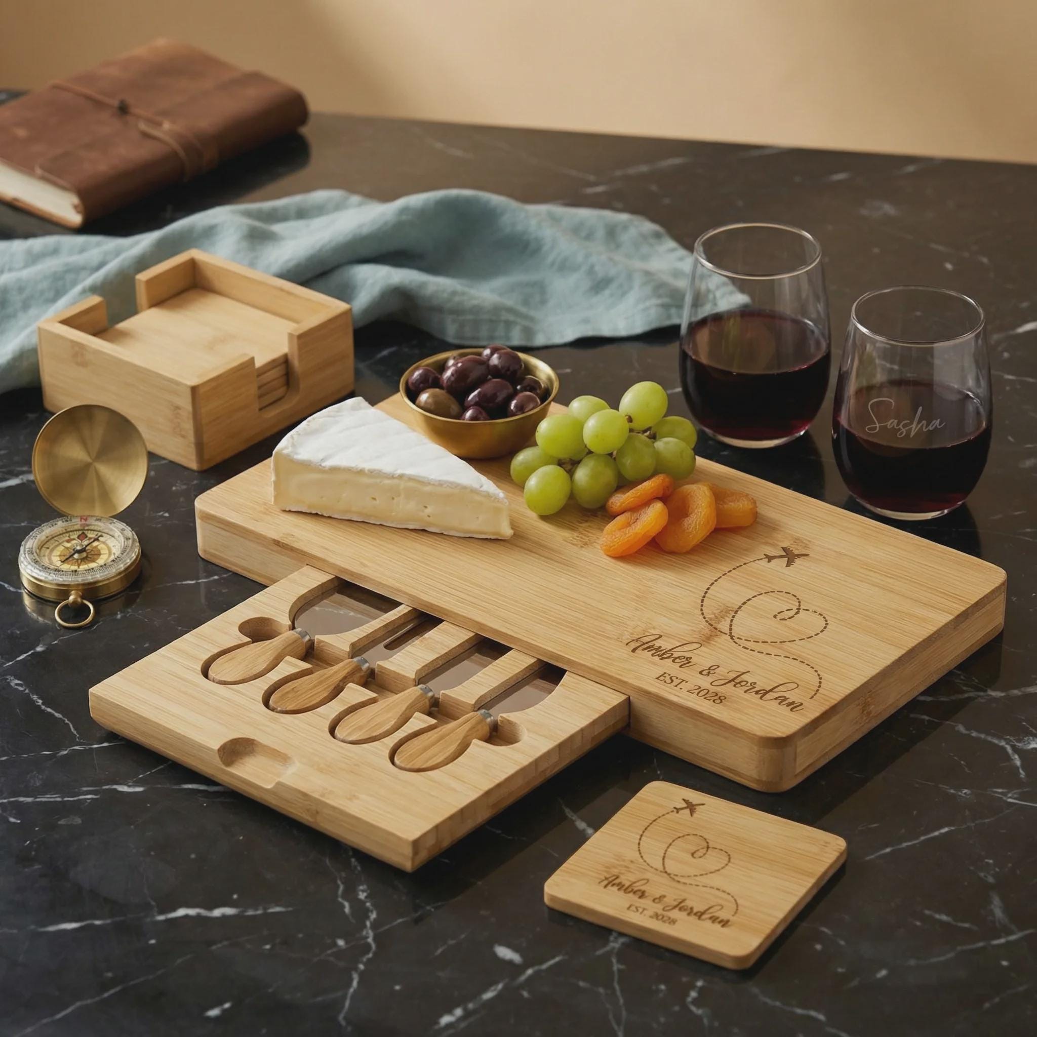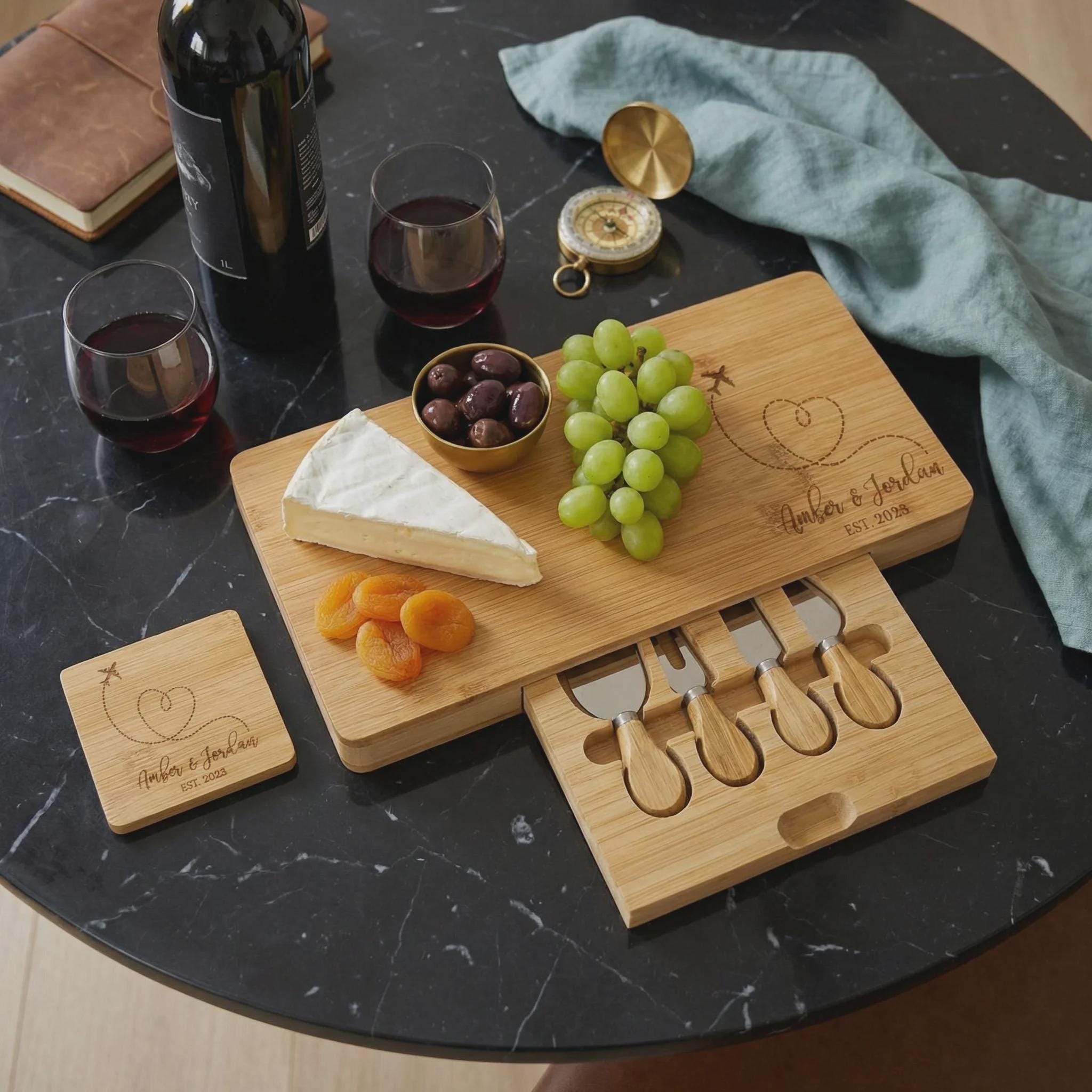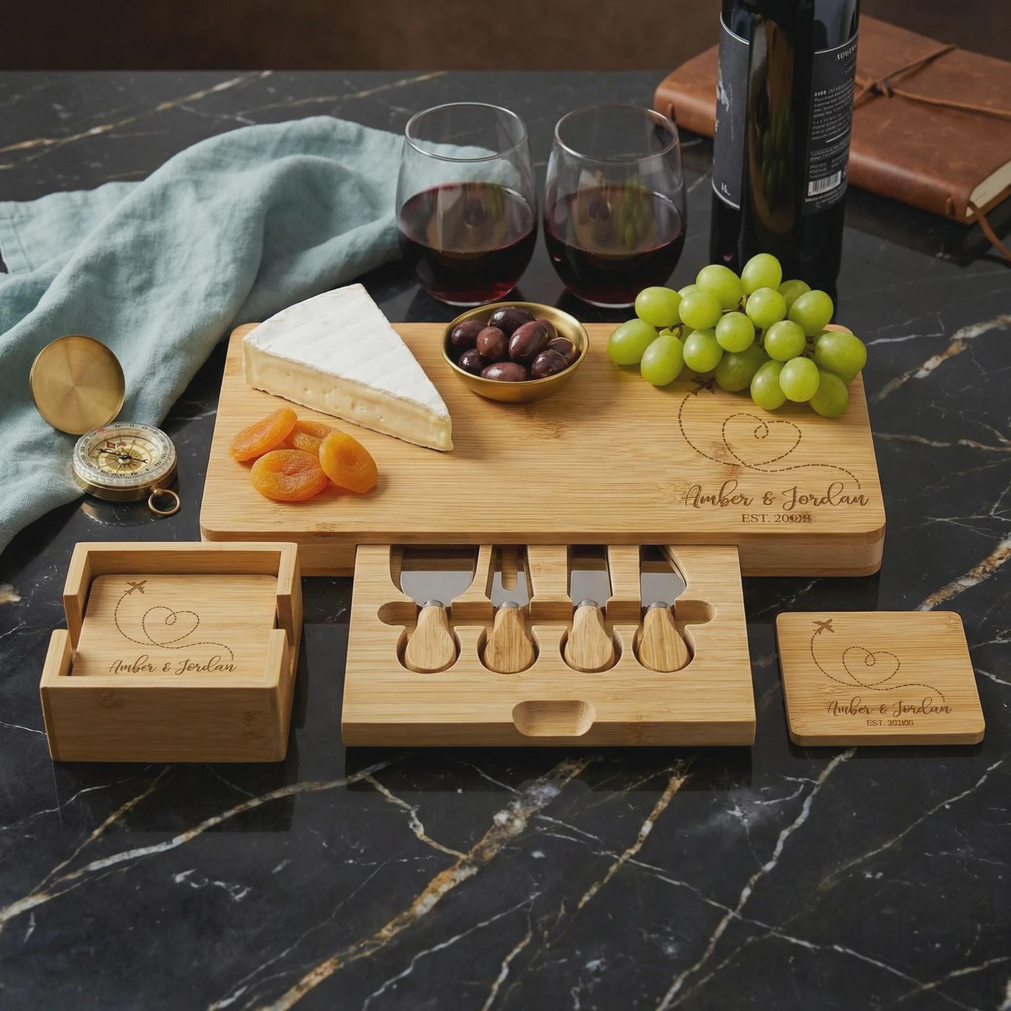 Personalized Bamboo Charcuterie Board Set | Destination Wedding Gift, Travel Lover Present