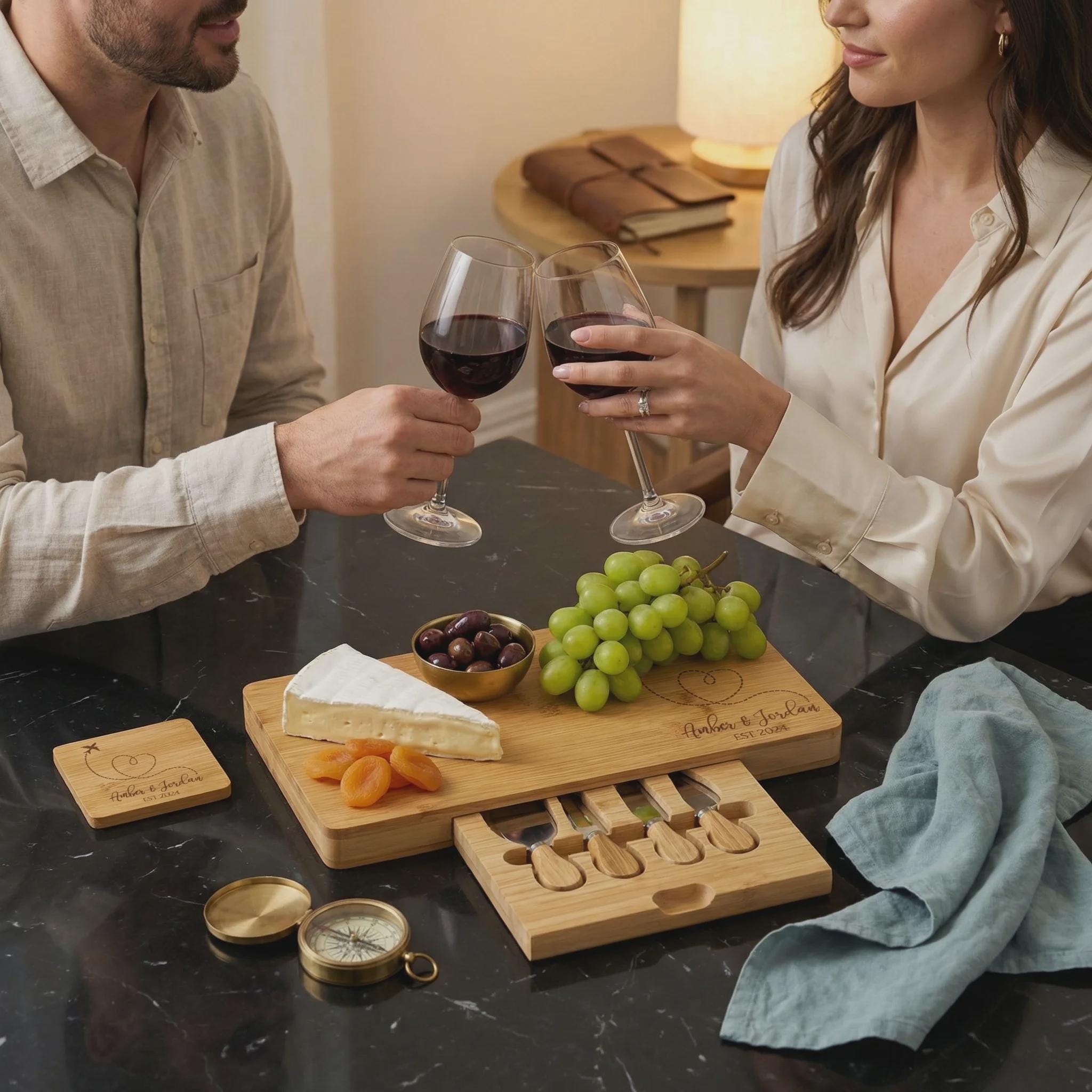 Elevate every occasion with this personalized cheese board set that effortlessly blends art, function, and sentiment. Click “Add to Cart” now to make your special moments unforgettable!