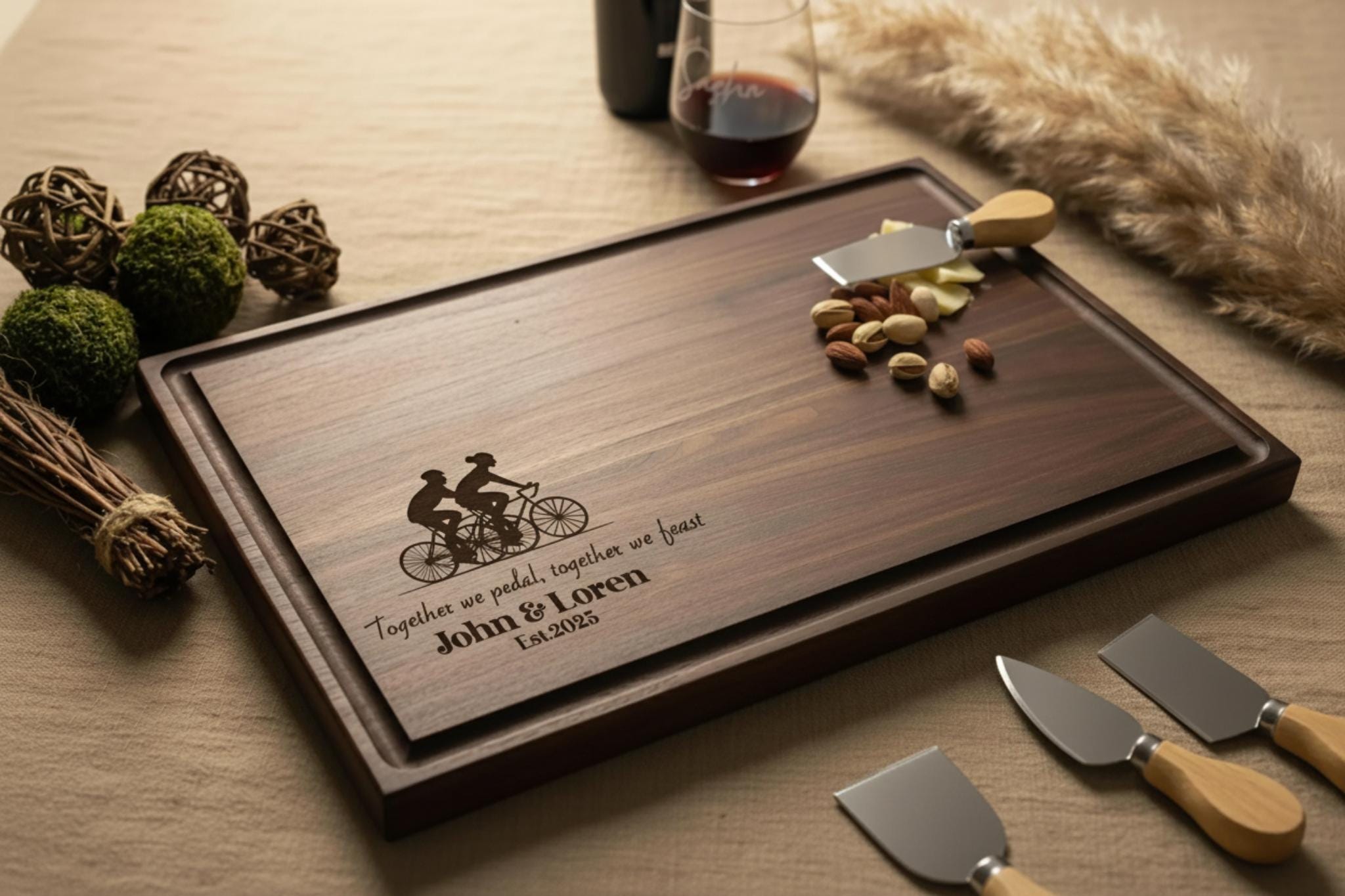 Personalized Biking Couple Cutting Board: Engraved Charcuterie Board