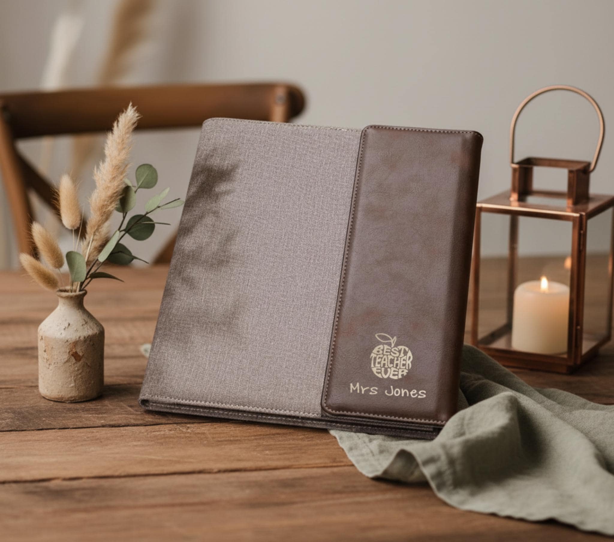 Personalized Faux Leather Portfolio – Custom Engraved Padfolio & Notepad Cover, Teacher Appreciation Gift, Thank You Teacher