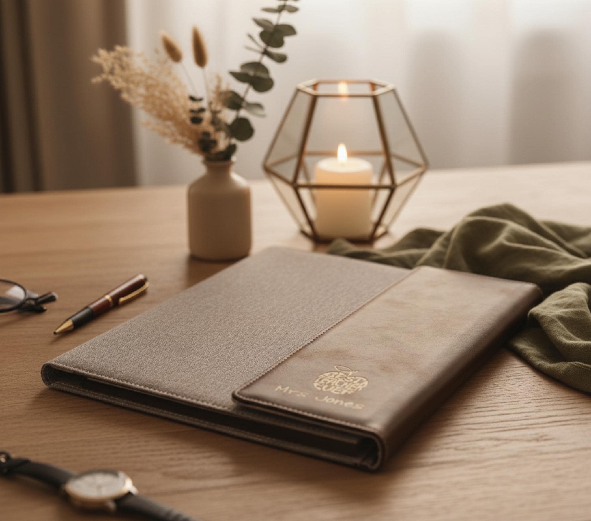 These personalized Portfolios are the perfect blend of style and practicality, designed to keep your documents elegantly organized on the go. Ideal for anyone—whether it’s a student, professional, or a thoughtful gift for someone special—this portfolio lets you carry your essentials in a truly unique way.