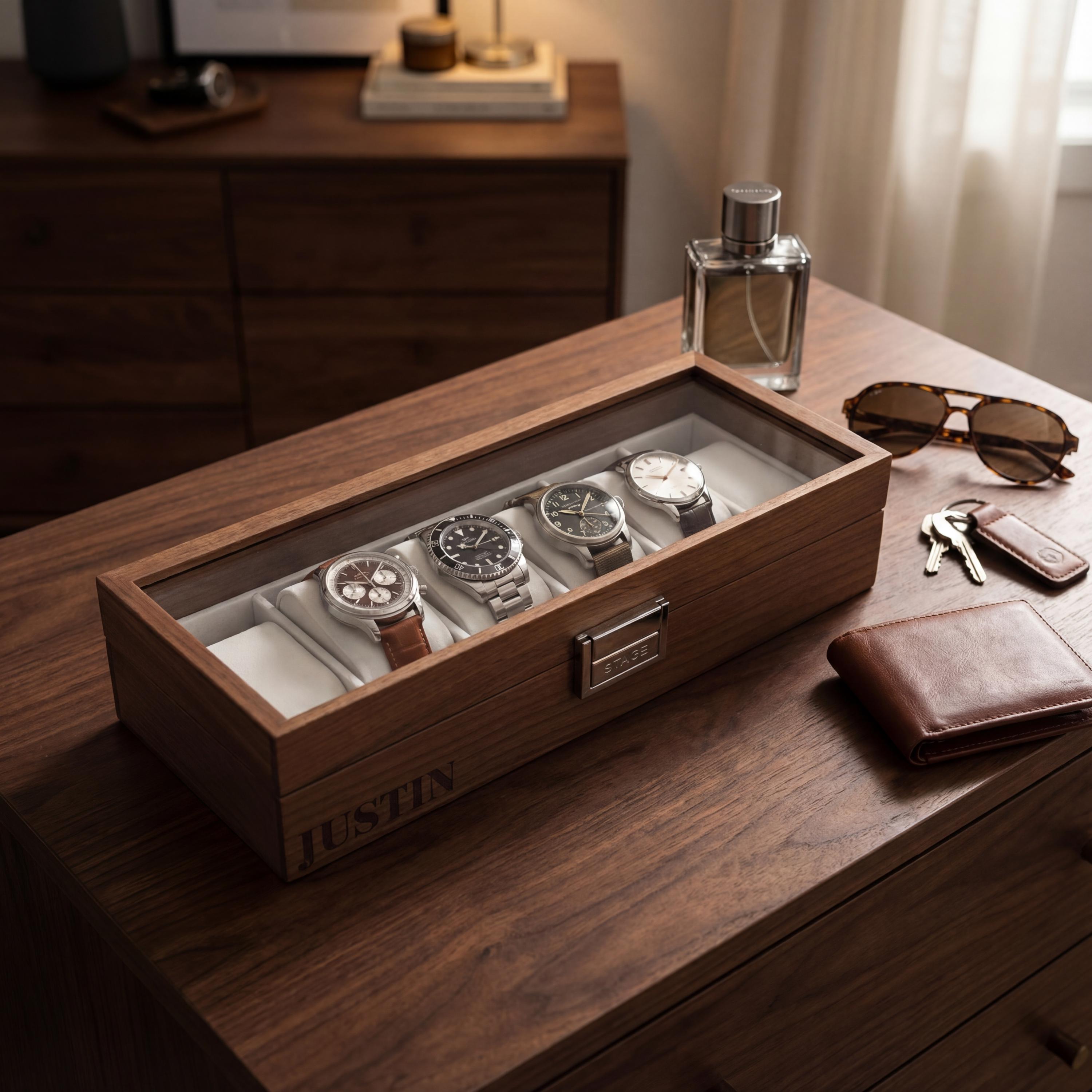 Ideal for watch enthusiasts and as a thoughtful gift, these personalized watch boxes are the perfect way to bring sophistication and order to any space. Order now and enjoy a blend of quality craftsmanship and personalized style in one elegant package!