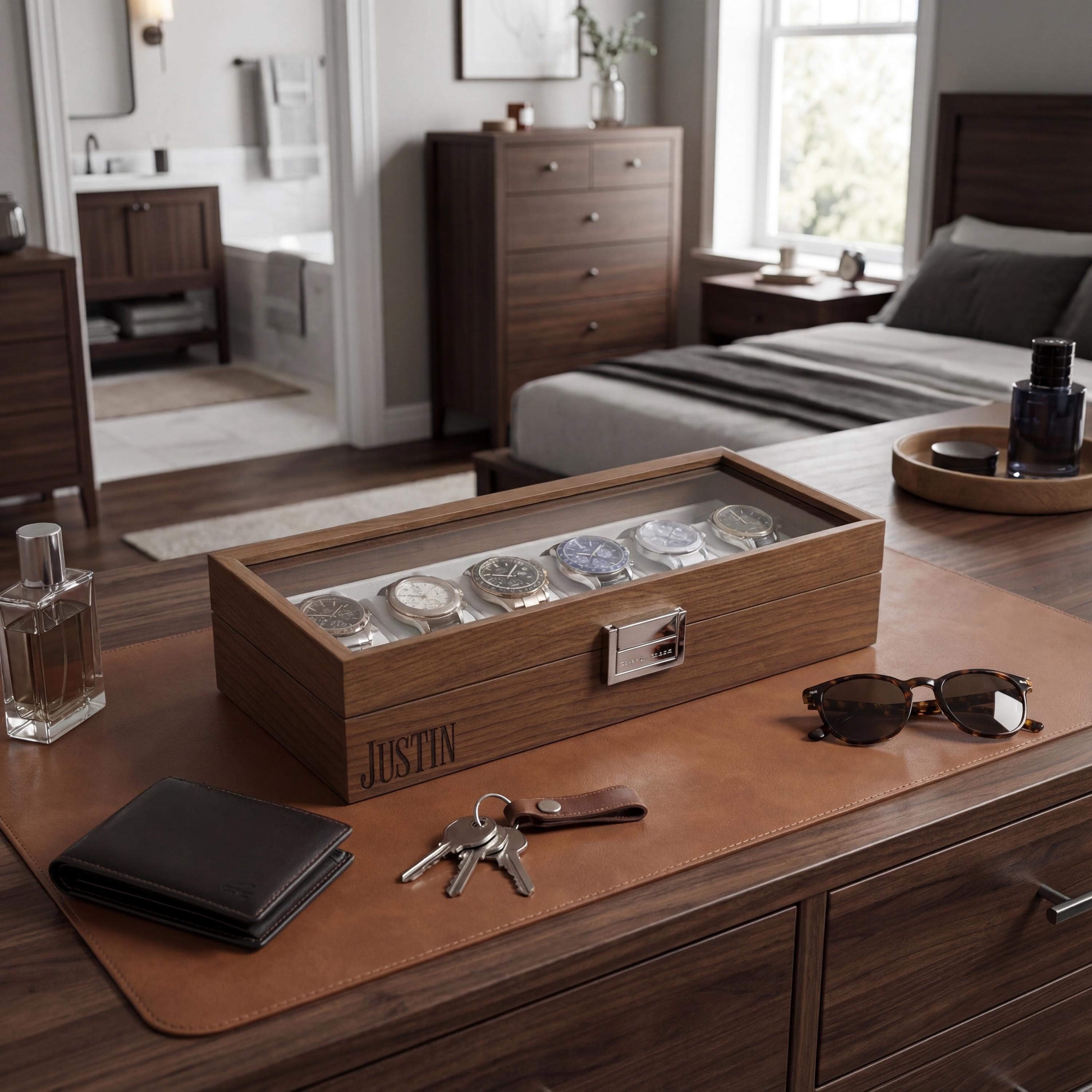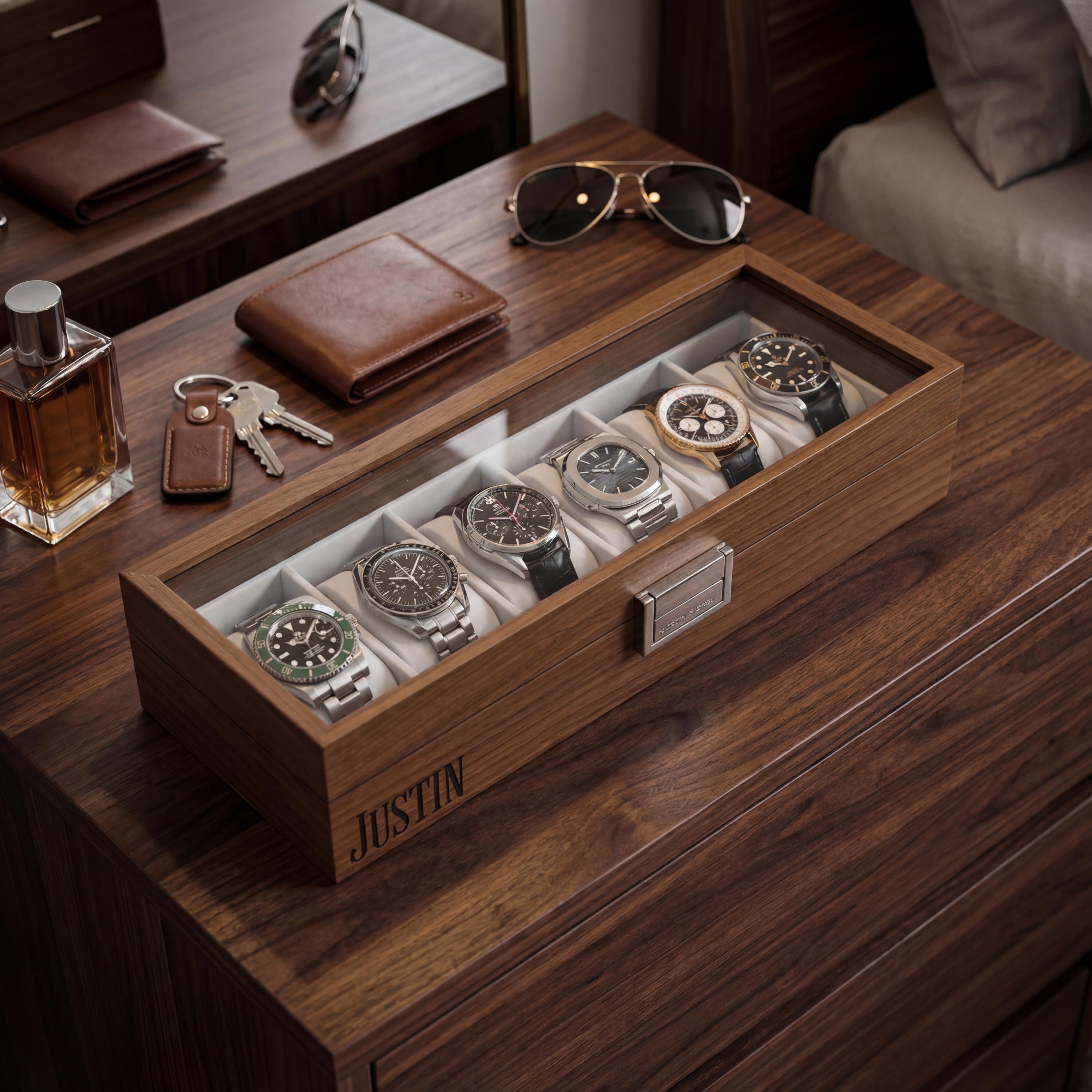 Ideal for watch enthusiasts and as a thoughtful gift, these personalized watch boxes are the perfect way to bring sophistication and order to any space. Order now and enjoy a blend of quality craftsmanship and personalized style in one elegant package!