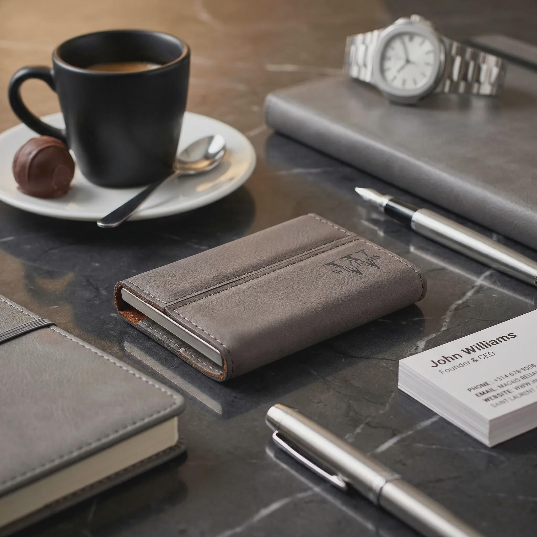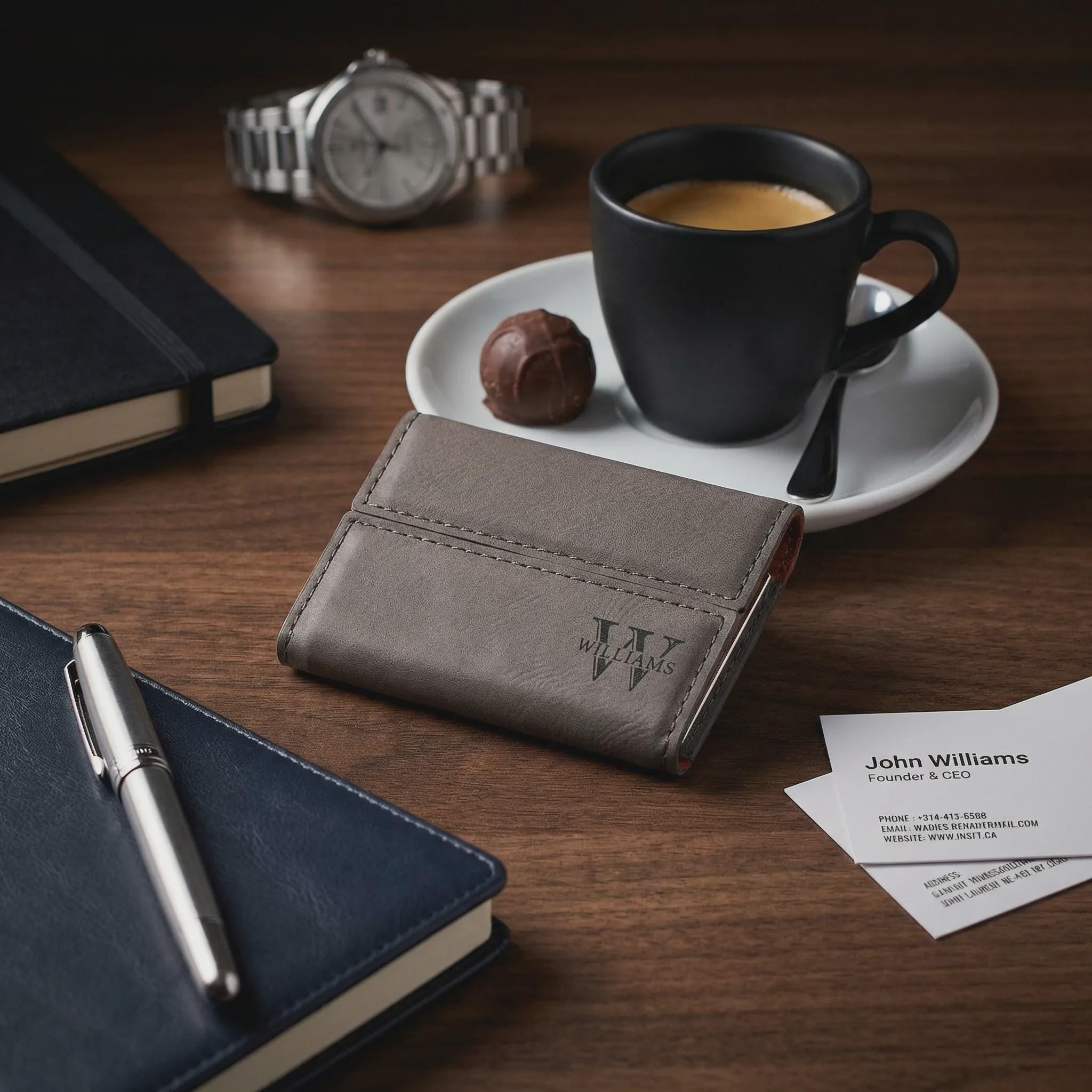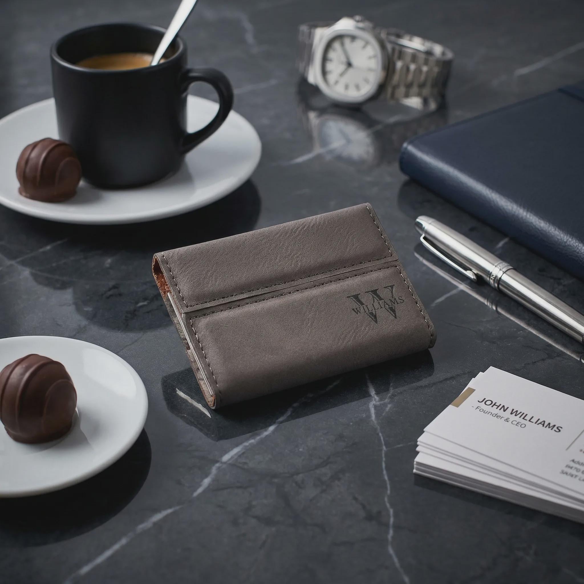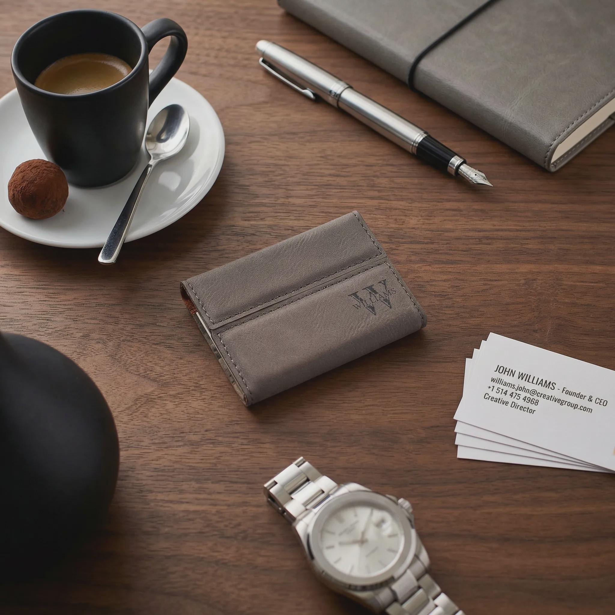 A refined, affordable alternative to leather that looks premium and engraves beautifully. Perfect for professionals who want a memorable, practical gift.