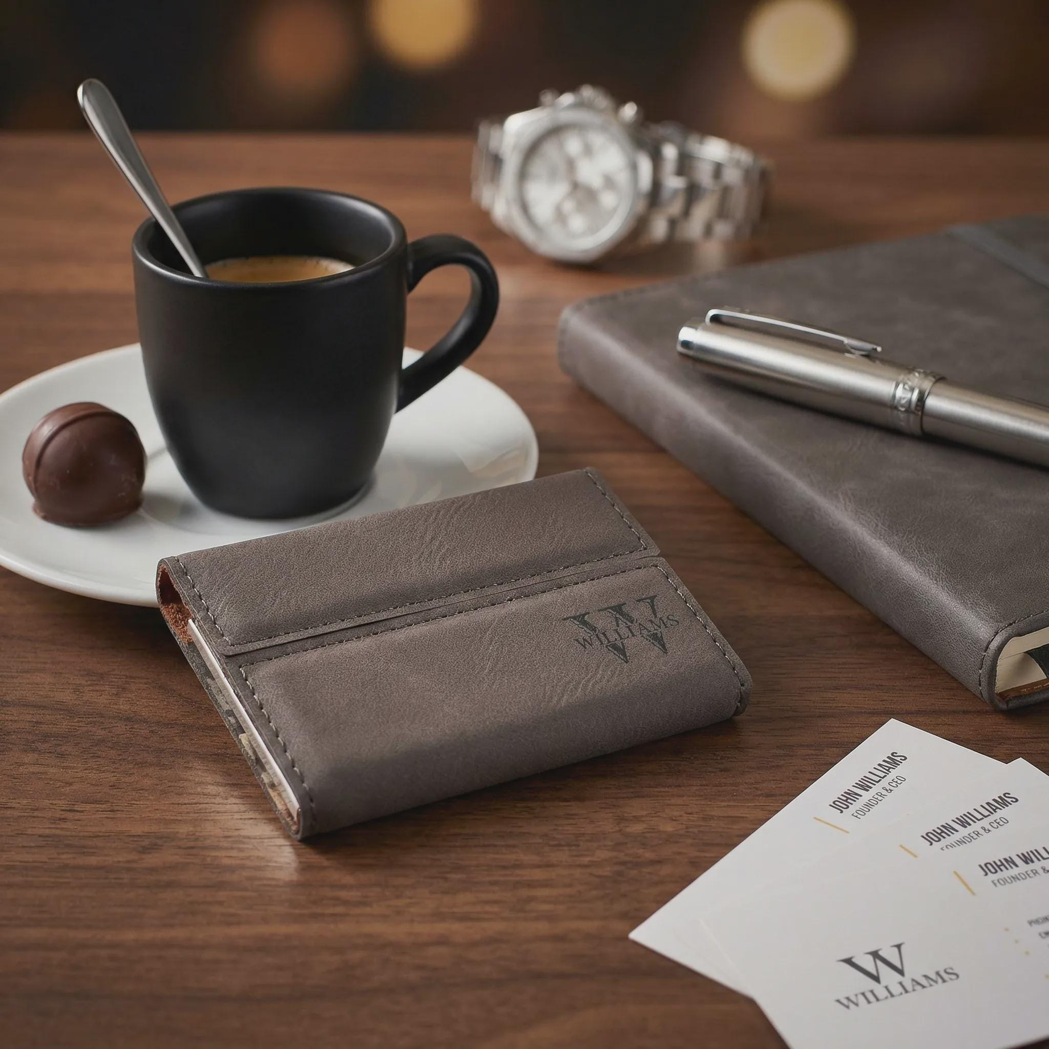 Personalized Vegan Leather Business Card Case, Custom Monogram Professional Holder