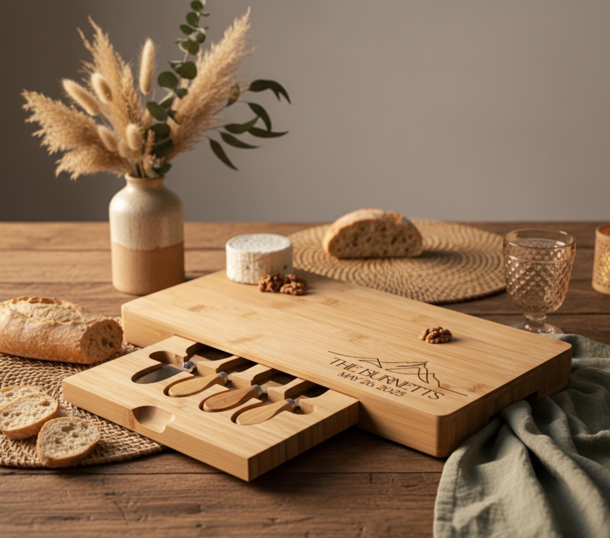 Elevate every occasion with this personalized cheese board set that effortlessly blends art, function, and sentiment. Click “Add to Cart” now to make your special moments unforgettable!