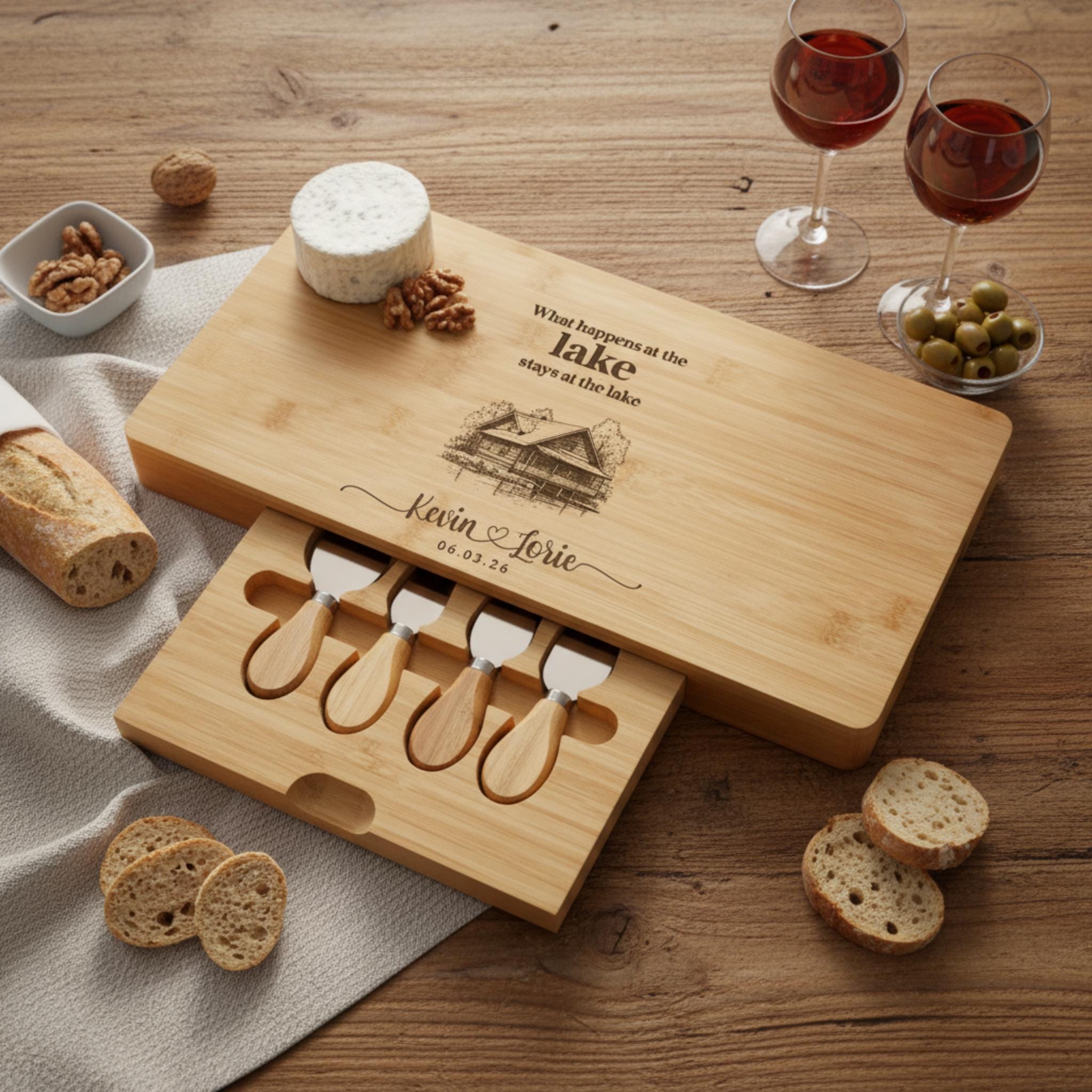 Elevate every occasion with this personalized cheese board set that effortlessly blends art, function, and sentiment. Click “Add to Cart” now to make your special moments unforgettable!