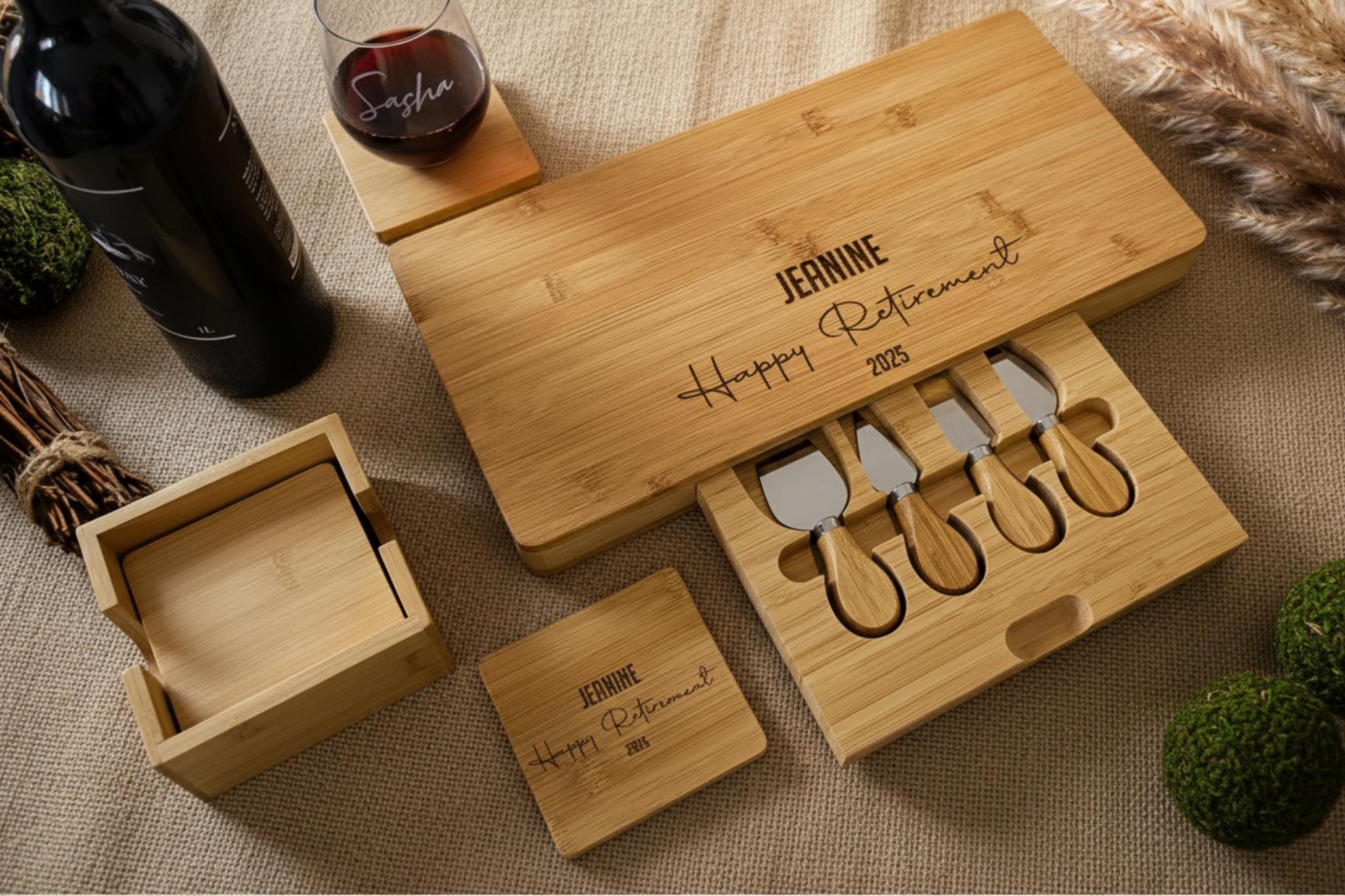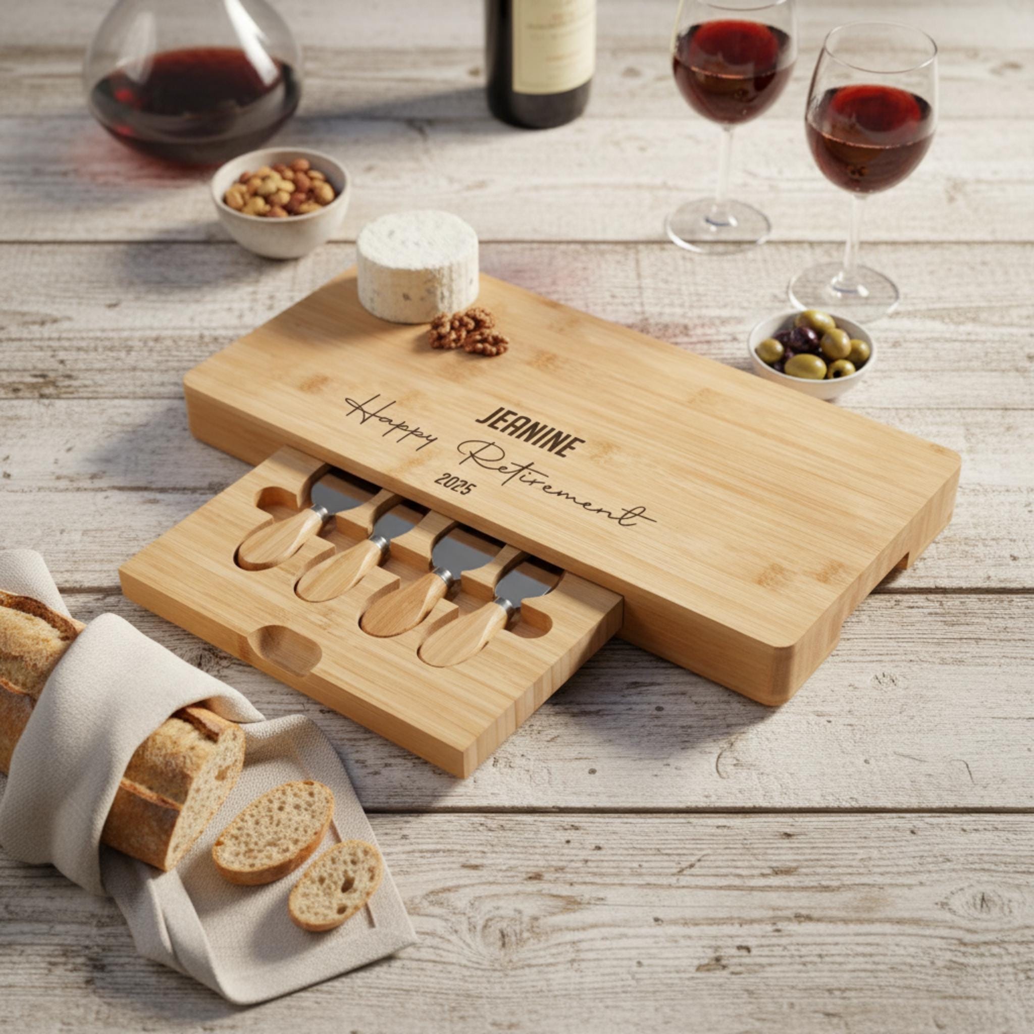 Elevate every occasion with this personalized cheese board set that effortlessly blends art, function, and sentiment. Click “Add to Cart” now to make your special moments unforgettable!