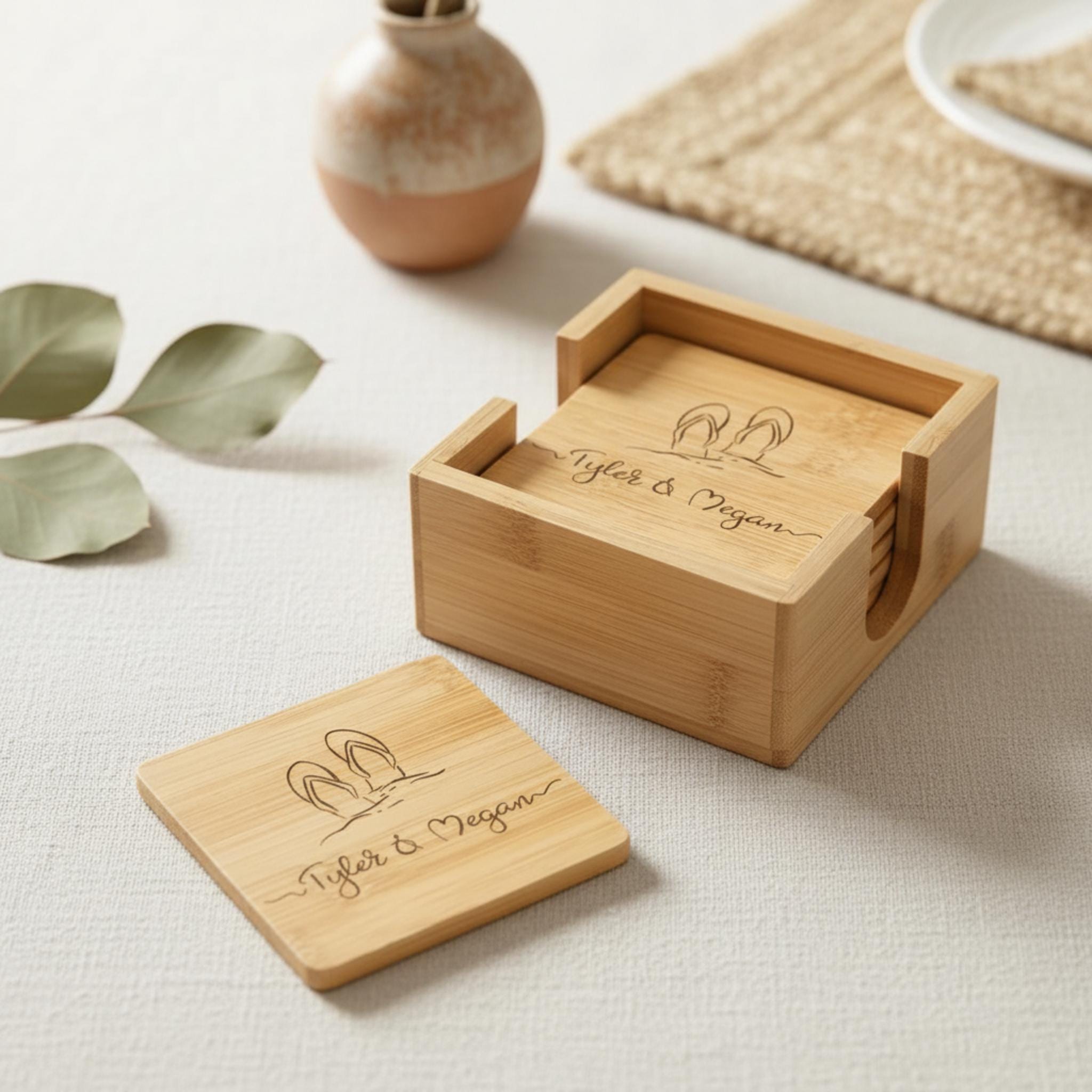 Pair the personalized board with the matching coaster set for a complete, sophisticated presentation.