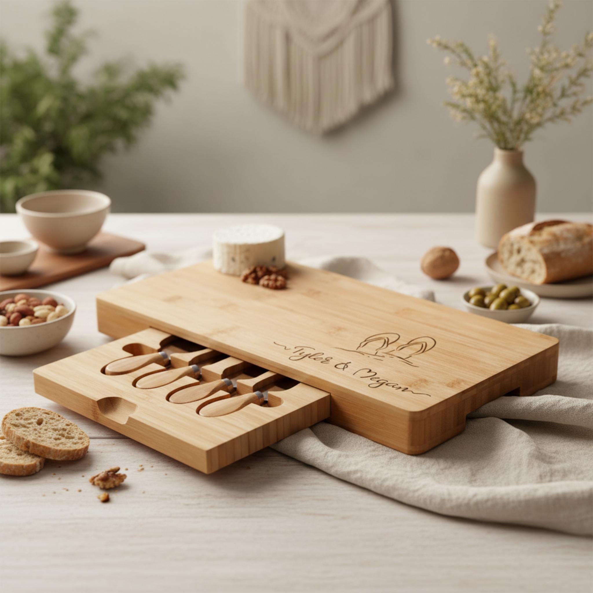 Elevate every occasion with this personalized cheese board set that effortlessly blends art, function, and sentiment. Click “Add to Cart” now to make your special moments unforgettable!