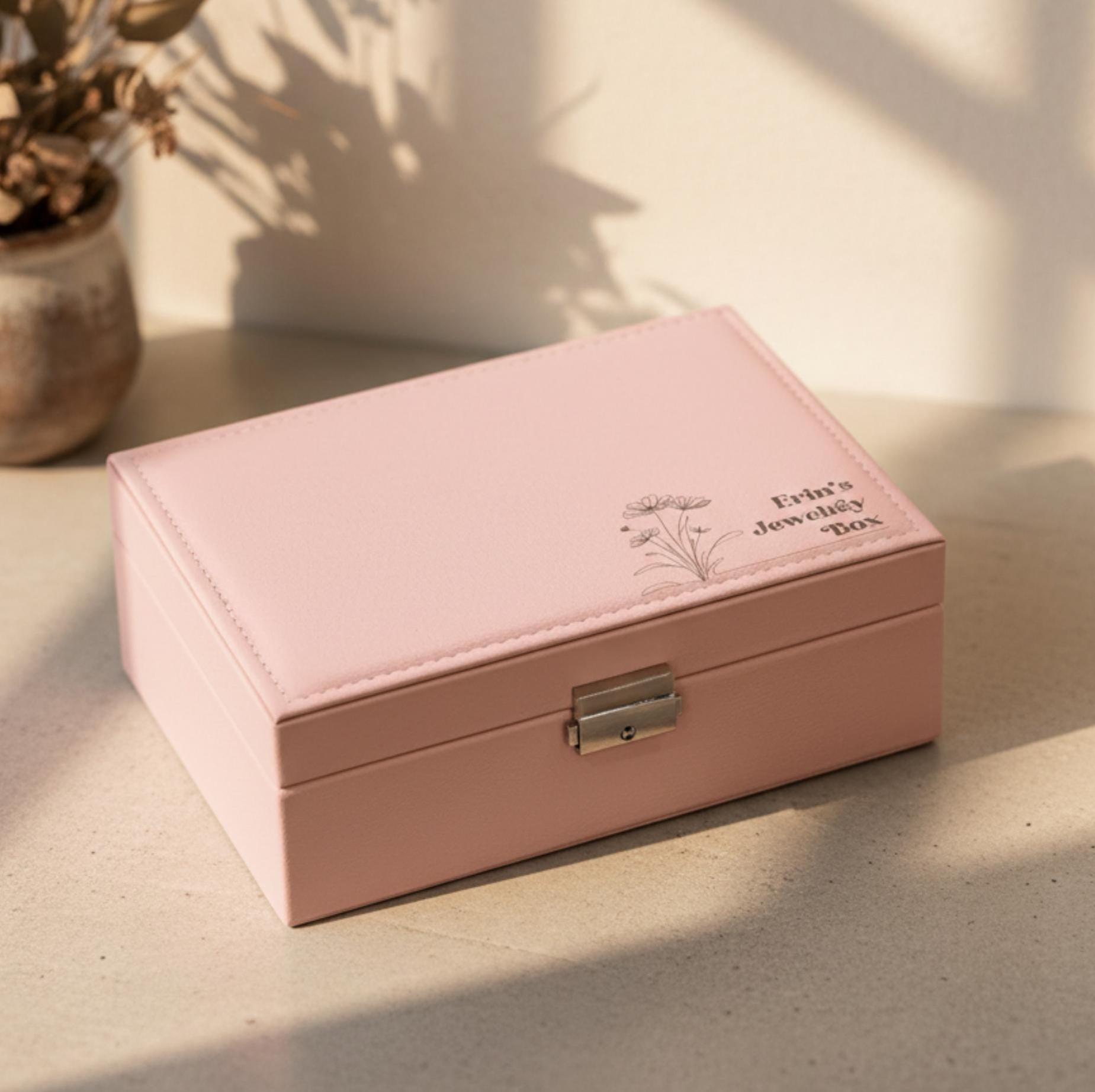 Each box is custom-engraved on demand, creating a unique personalized jewelry box for her.