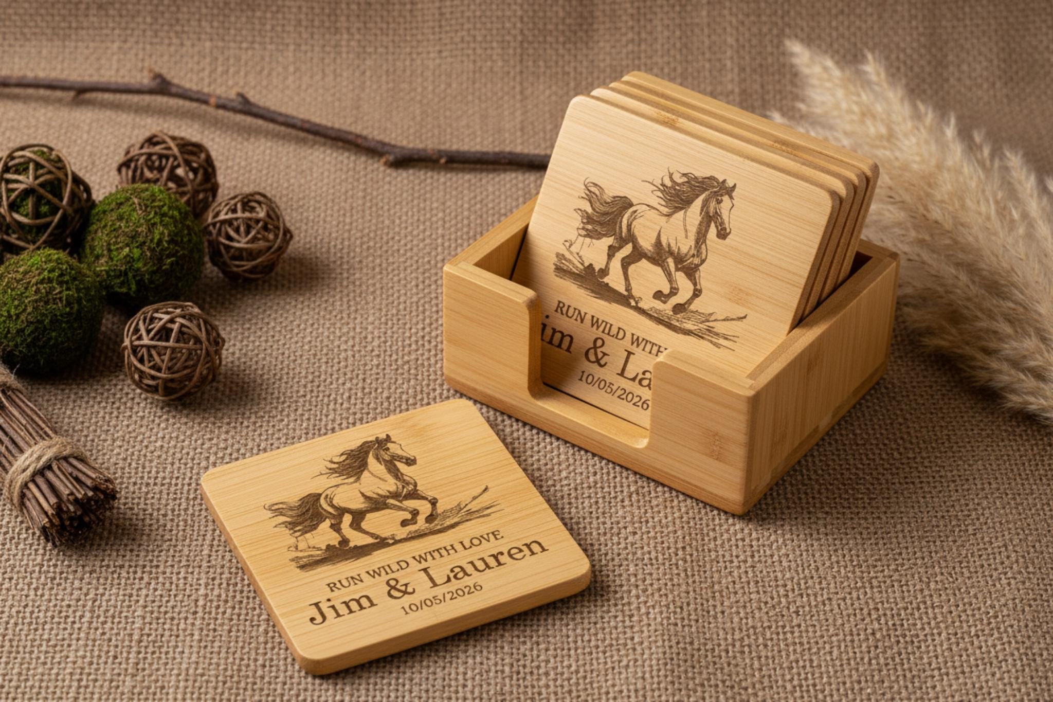 Pair the personalized board with the matching coaster set for a complete, sophisticated presentation.