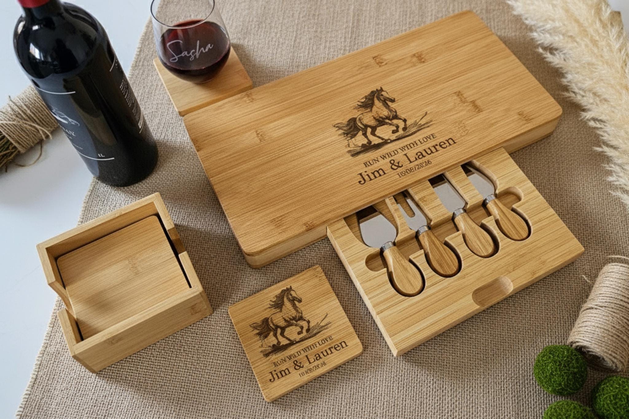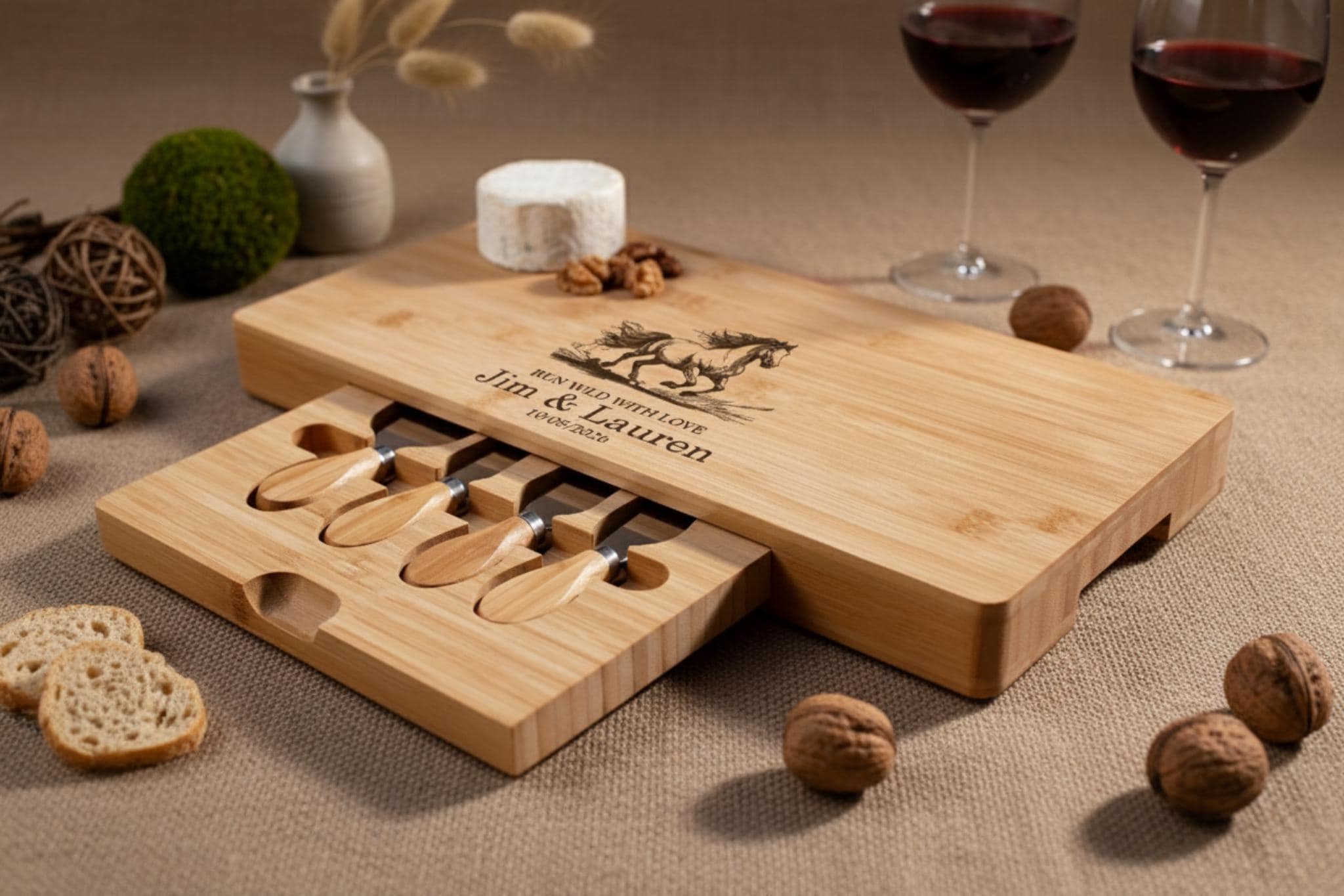 Personalized Charcuterie Board – Horse-Lover Couple: Custom Engraved Cheese Board, Housewarming, Kitchen Decor, Wedding, Hosting Gift
