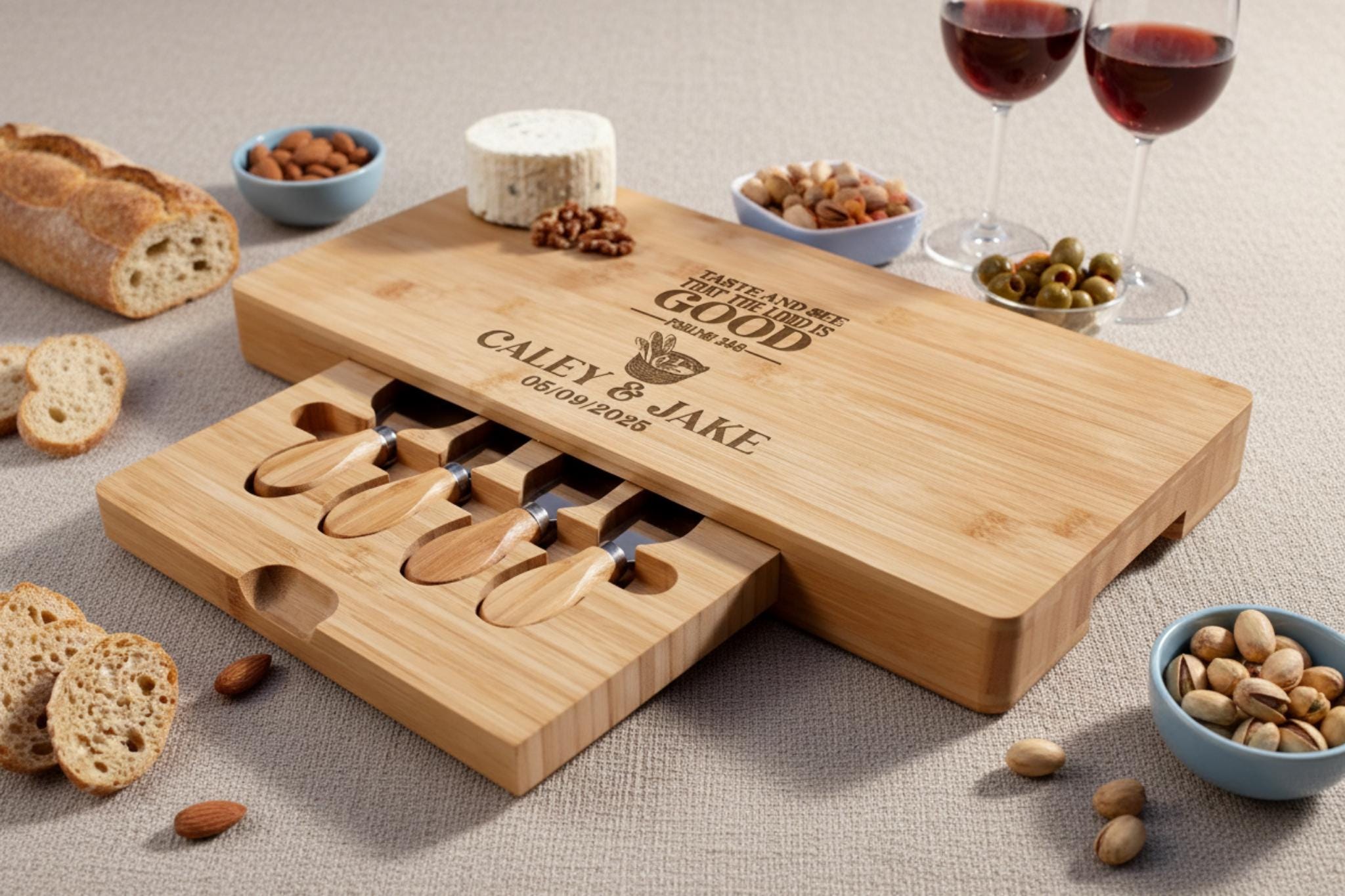 Personalized Charcuterie Board – Bible Verse: Custom Engraved Cheese Board, Housewarming, Kitchen Decor, Religious, Christian, Couple Gift