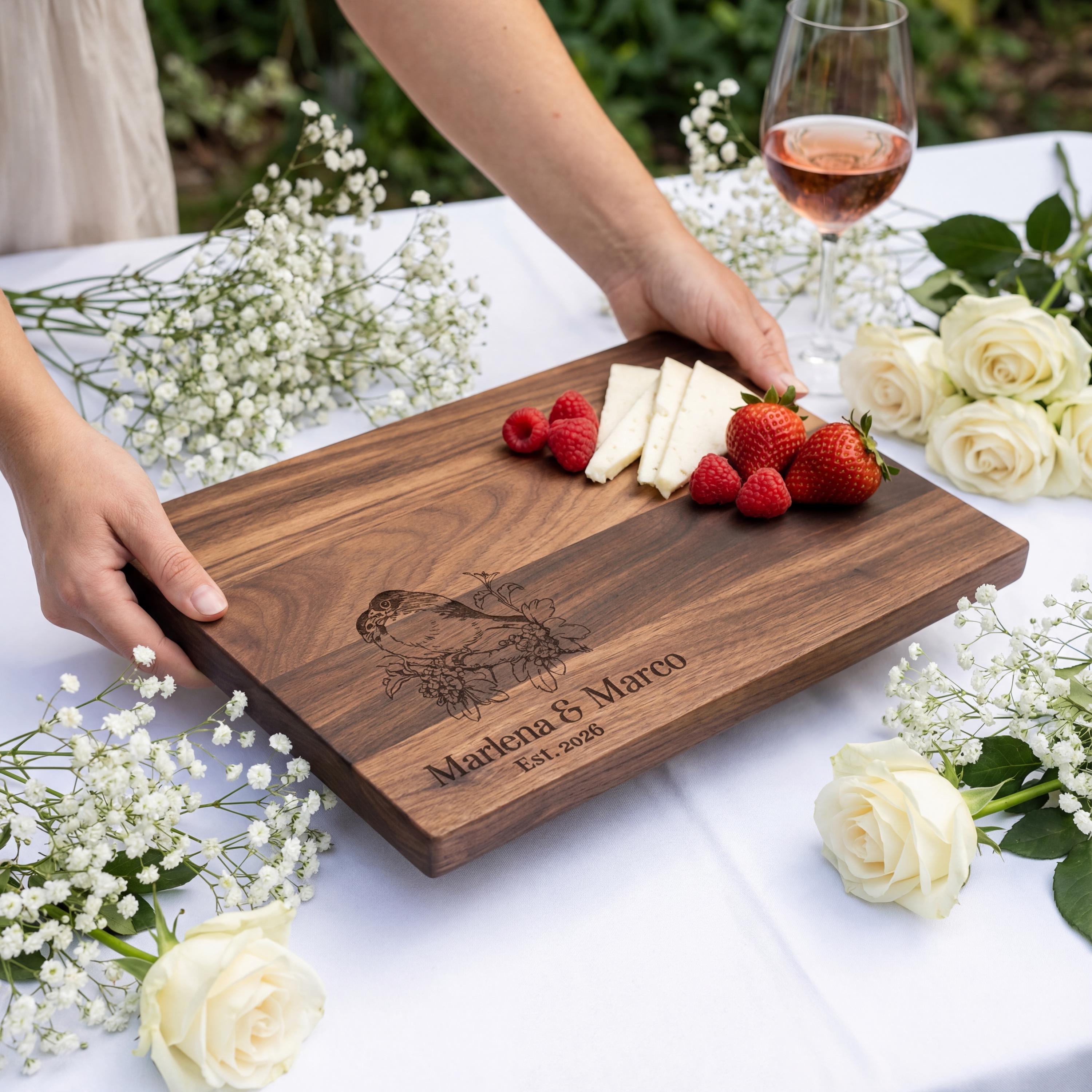 Personalized Charcuterie Board – Bird Watcher Couple: Custom Cutting Board - Bird Lovers, Engagement, Housewarming, Hosting, Wedding Gift