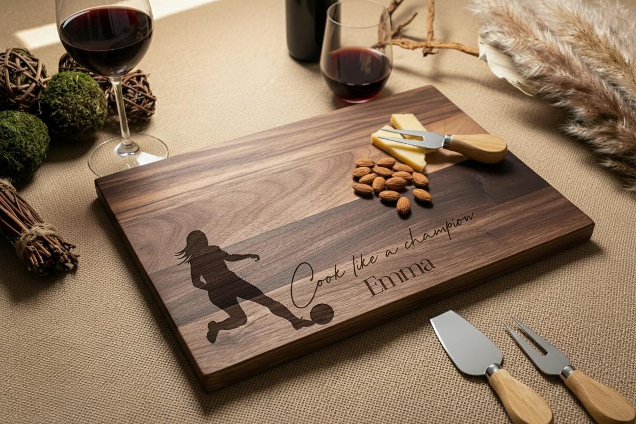 Personalized Charcuterie Board – Soccer Theme: Custom Cutting Board - Soccer Lover, Sport Enthusiast, Soccer Serving Board Gift