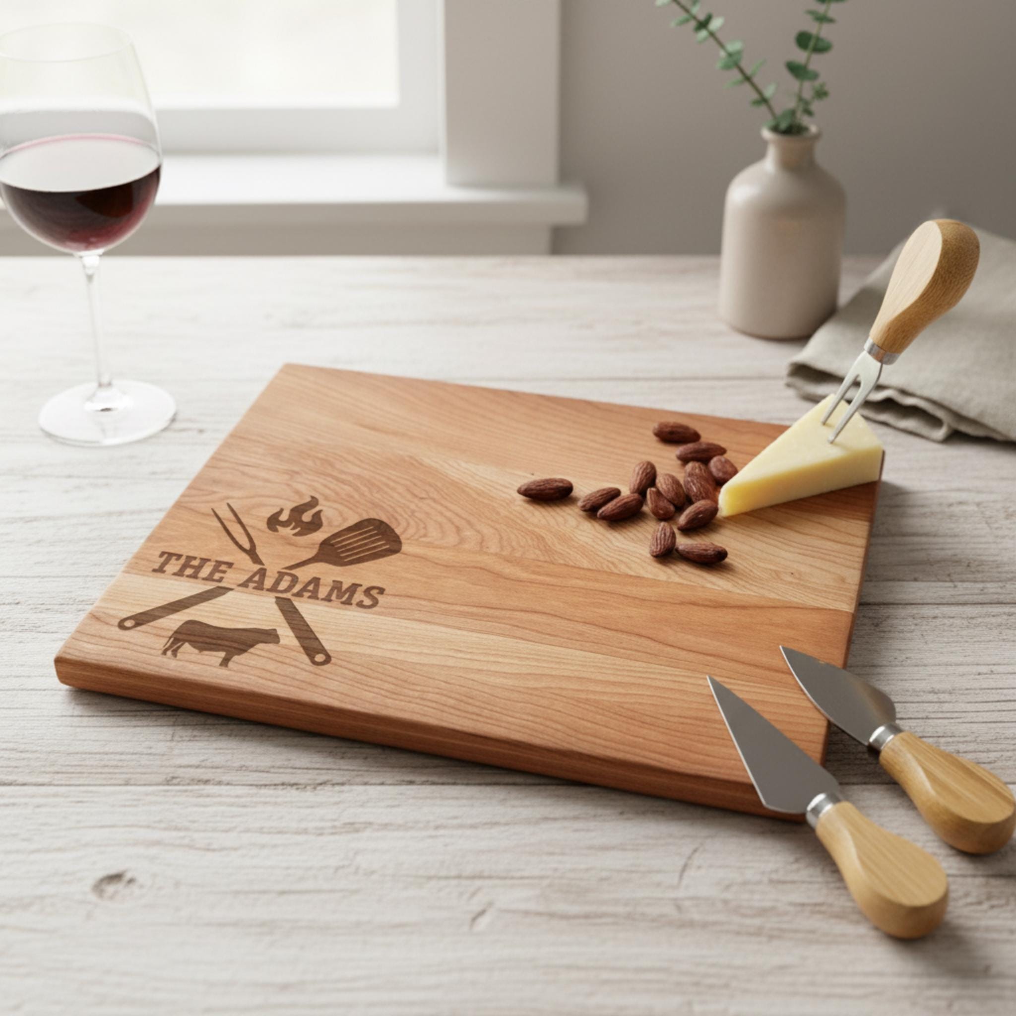 Personalized BBQ Theme Cutting Board – Custom Engraved Charcuterie Board - Hosting, Christmas Gift
