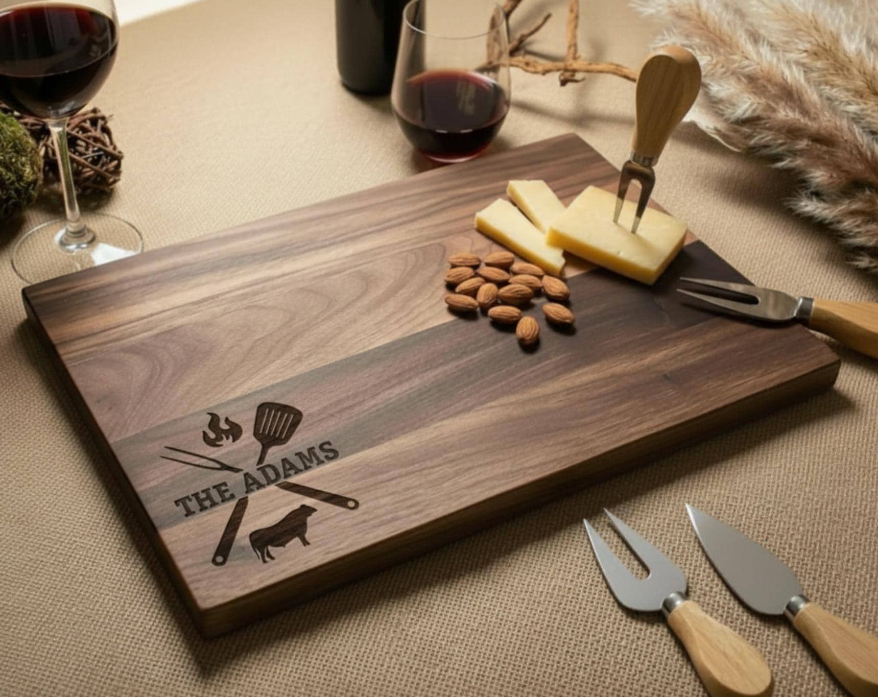 Personalized Charcuterie Board – BBQ Theme: Custom Cutting Board - Housewarming, BBQ Lovers, Anniversary, Hosting, Wedding, Christmas Gift