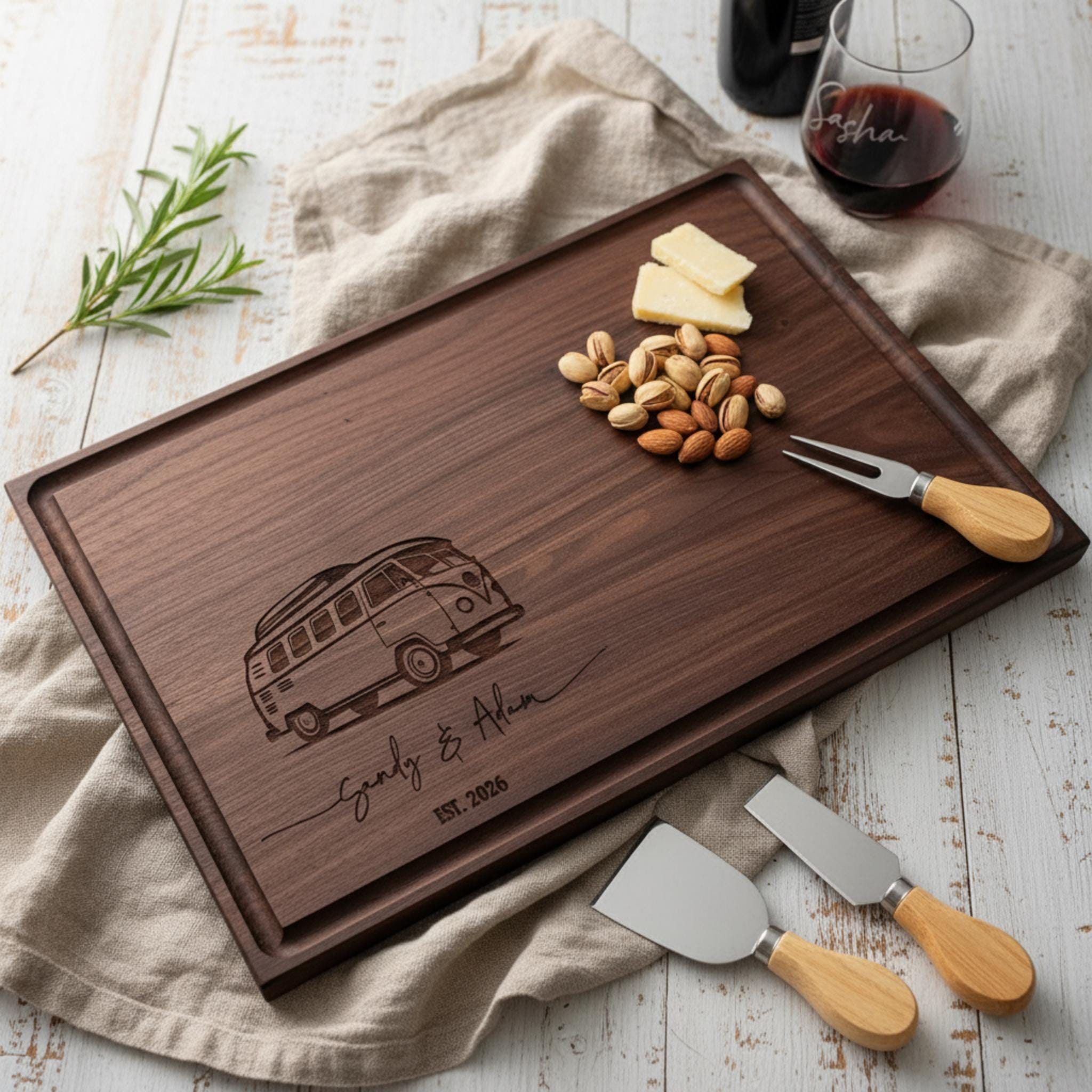 Personalized Charcuterie Board – Camping Couple: Custom Cutting Board, Gift For Nature Lovers, Kitchen Decor, Van Campers, Housewarming