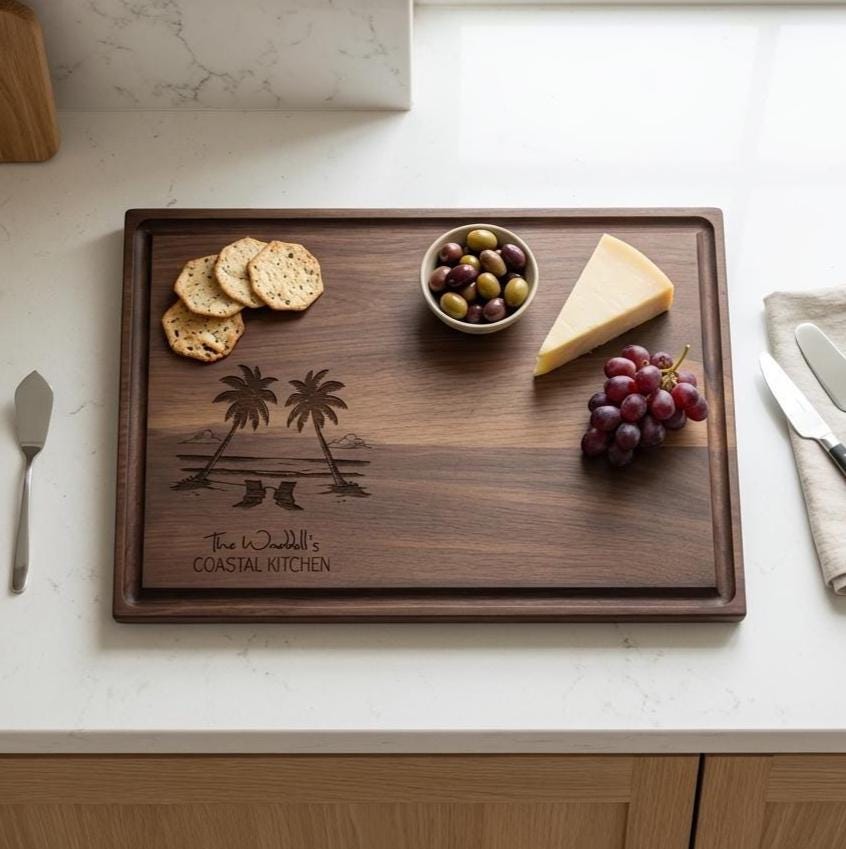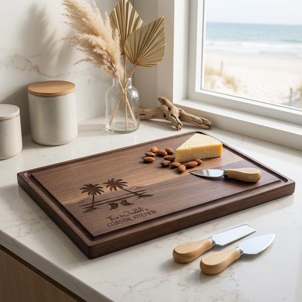Enhance your beach house with our Personalized Coastal Kitchen Cutting Board.