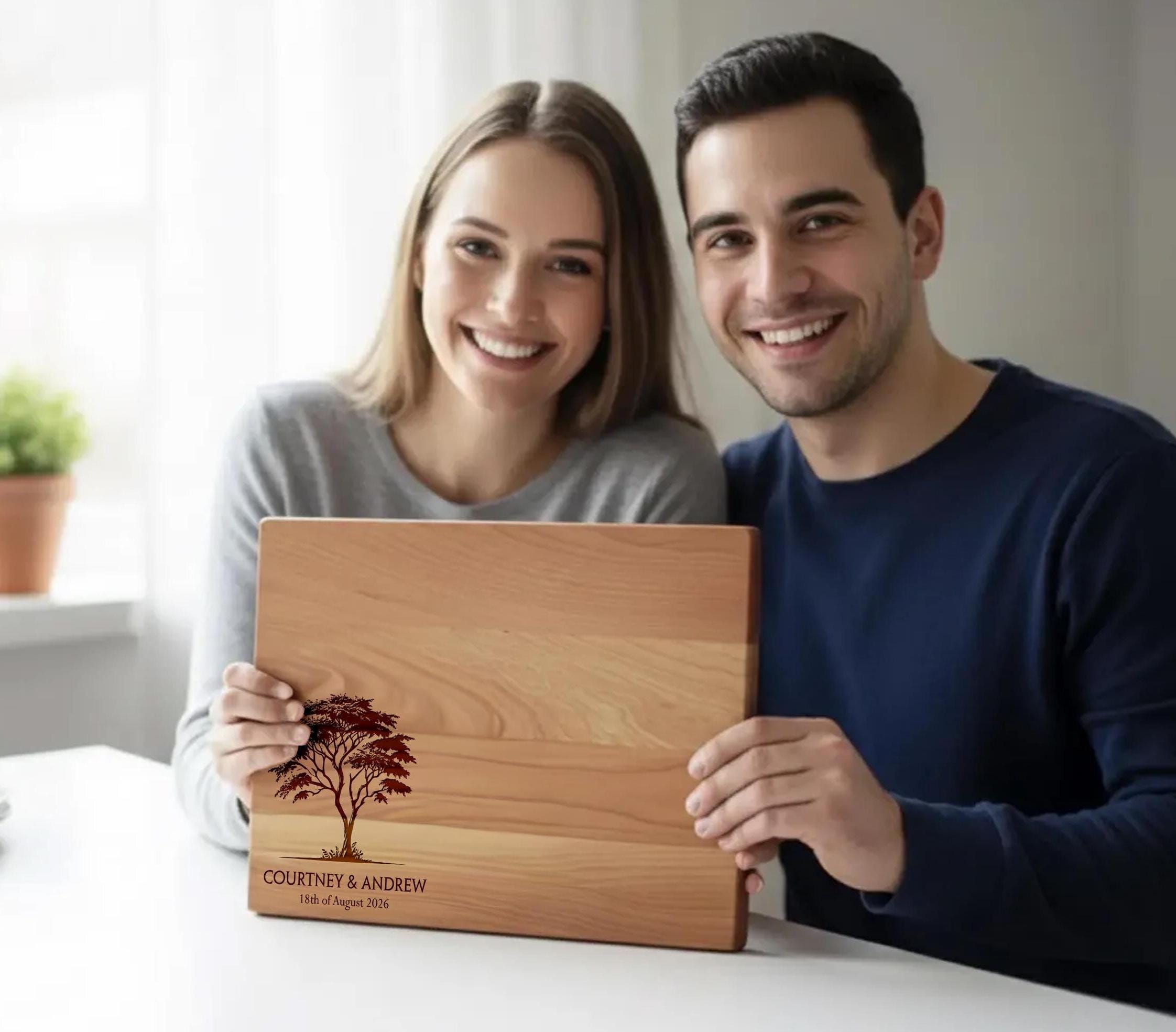 Celebrate love and lasting memories with our Personalized Couples Cutting Board. Engraved with the couple’s names, a special date, and an elegant Acacia Tree, this board is a timeless keepsake, perfect for anniversaries, weddings, housewarmings, or as a thoughtful realtor closing gift.