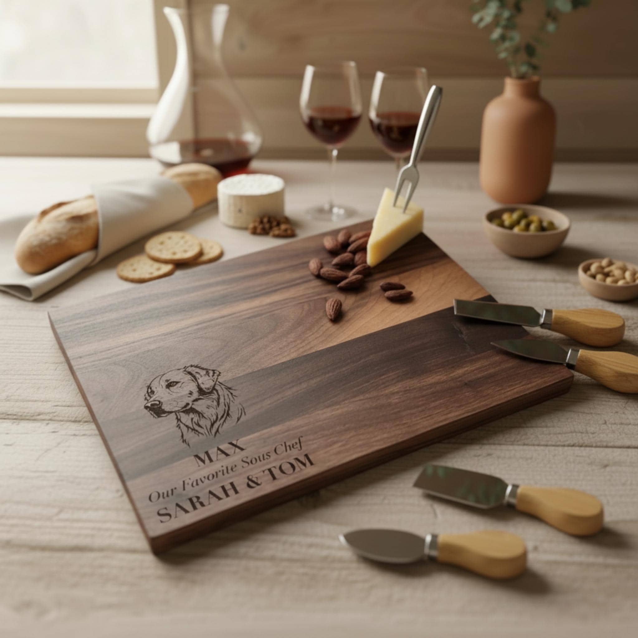 Personalized Cutting Board – Dog Owner Gift: Custom Engraved Charcuterie Board, Pet Photo Engraved, Puppy Gift, Dog Portrait Gift
