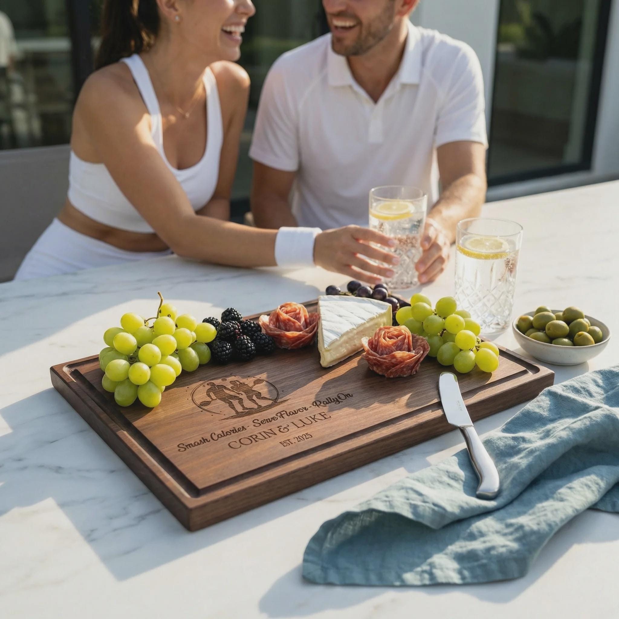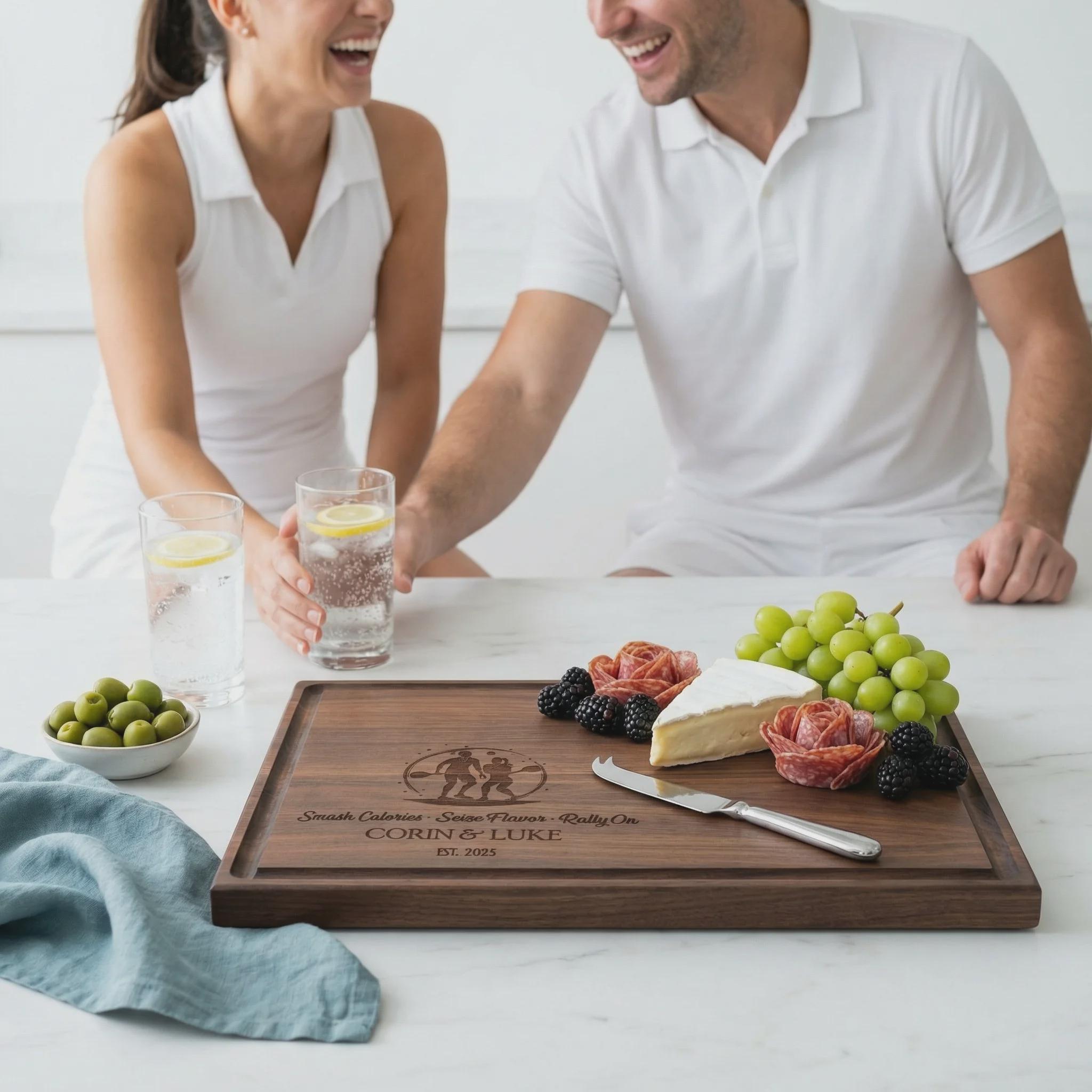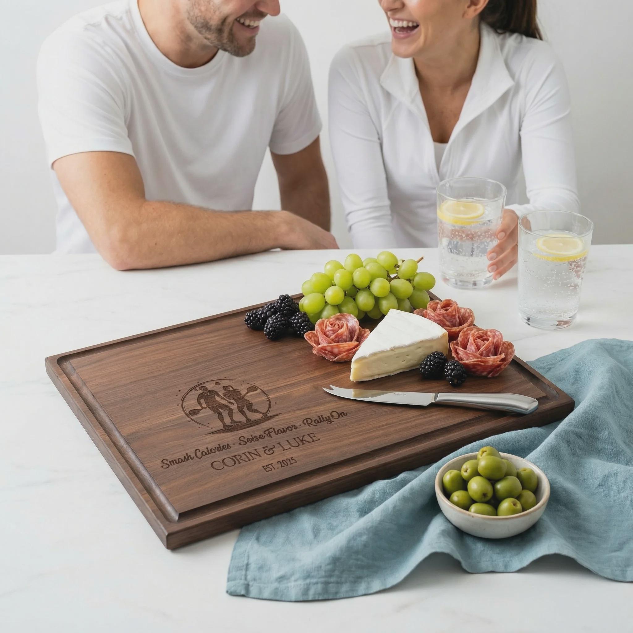 Perfect for pickleball couples, sports enthusiasts, housewarming gifts, anniversaries, or kitchen décor. This custom cutting board is both a functional kitchen essential and a lasting keepsake