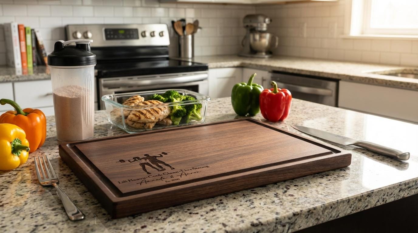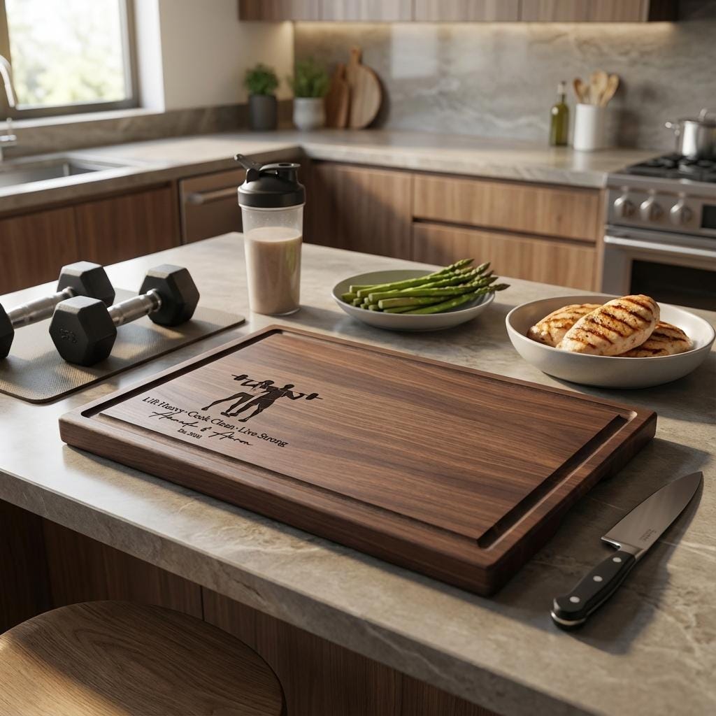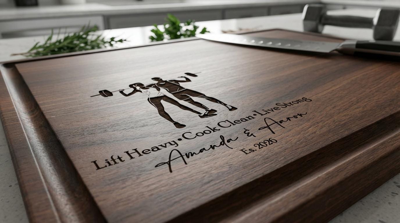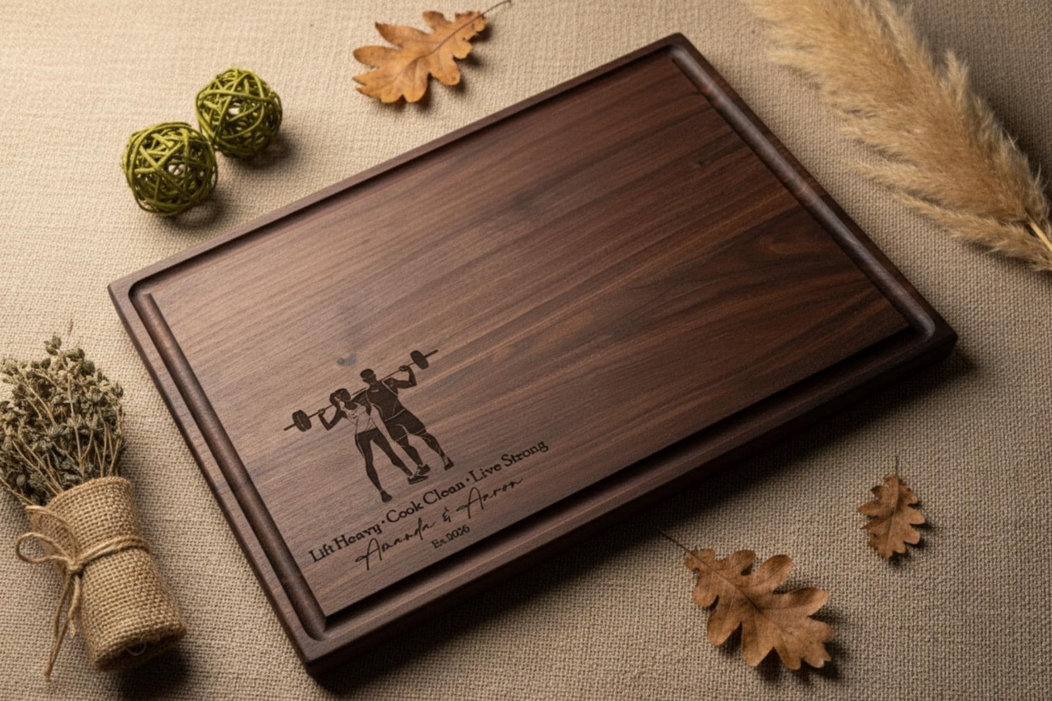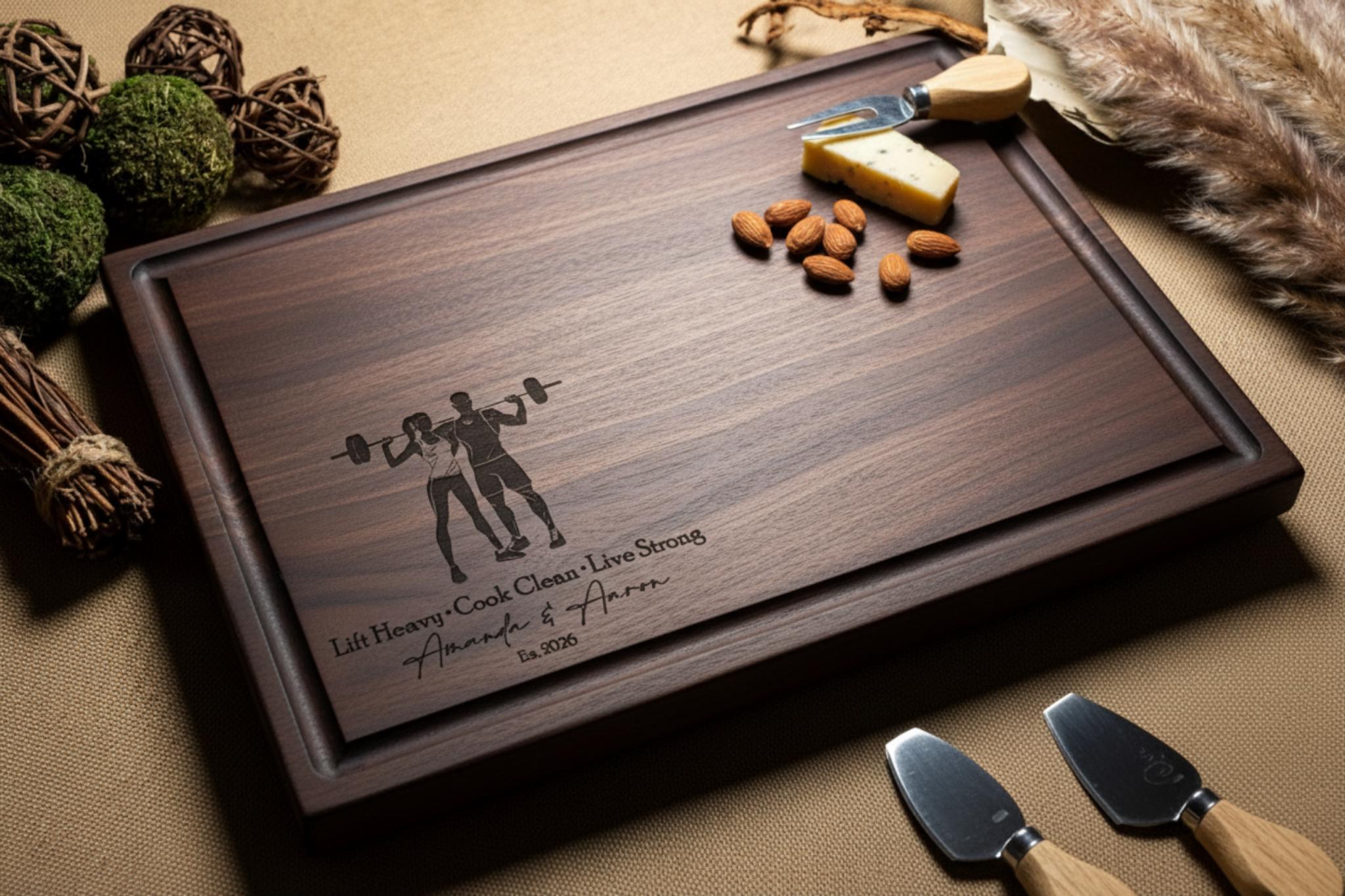 Personalized Cutting Board – Healthy Couple: Custom Engraved Charcuterie Board, Weightlifting, Workout, Gym, Body Builder, Kitchen Gift