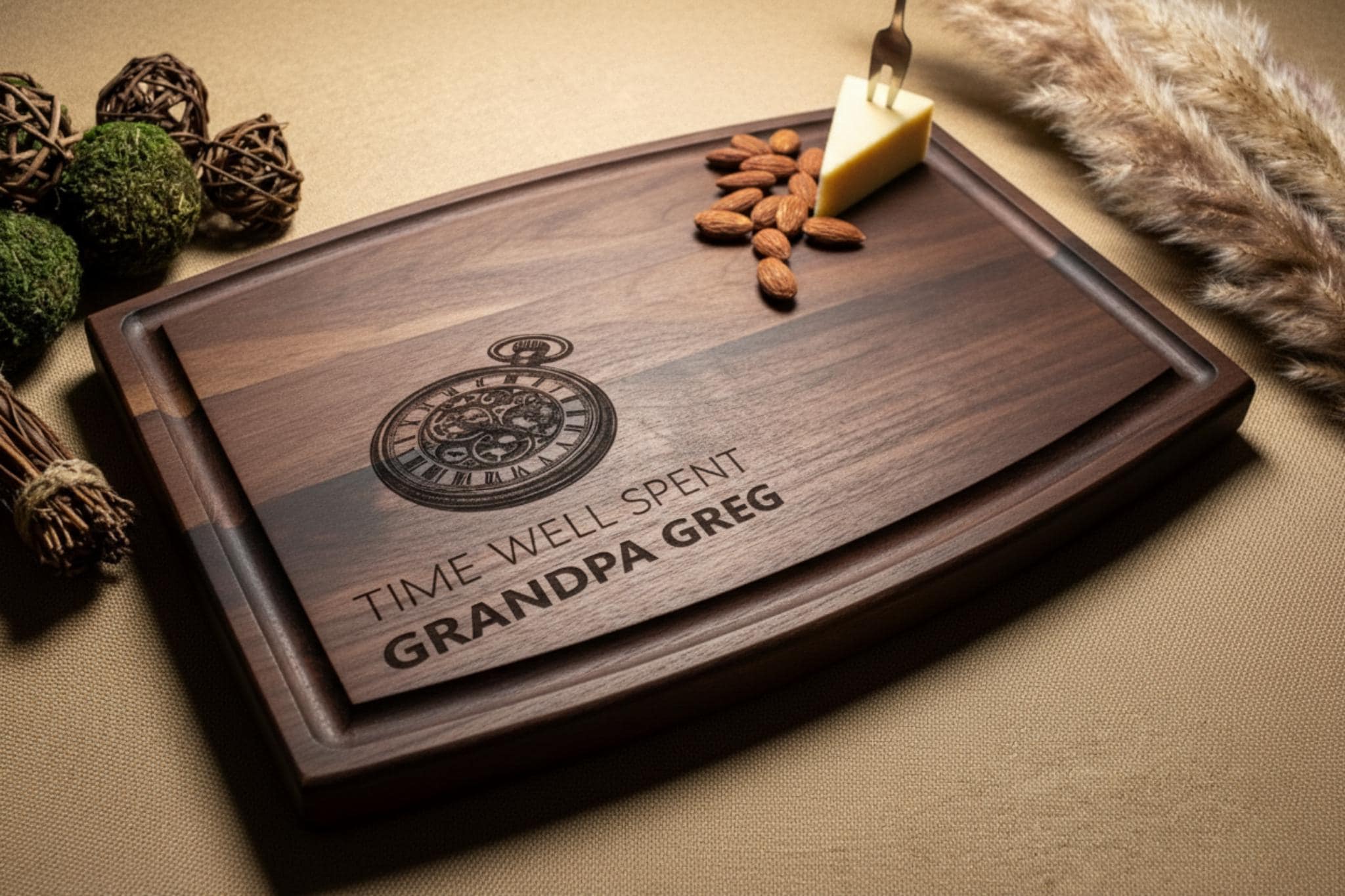 Personalized Cutting Board – Grandpa Pocket watch: Custom Engraved Charcuterie Board, Grandfather, Father's Day, Birthday, kitchen Gift