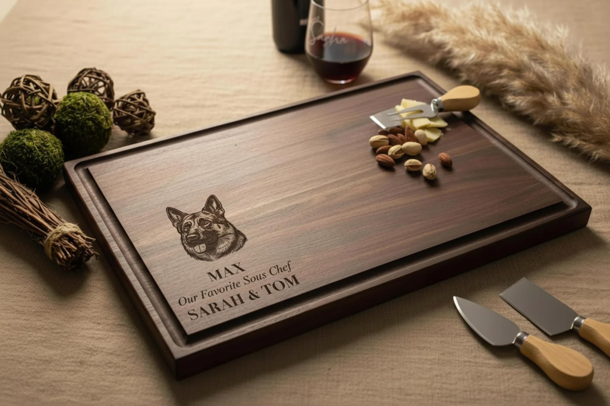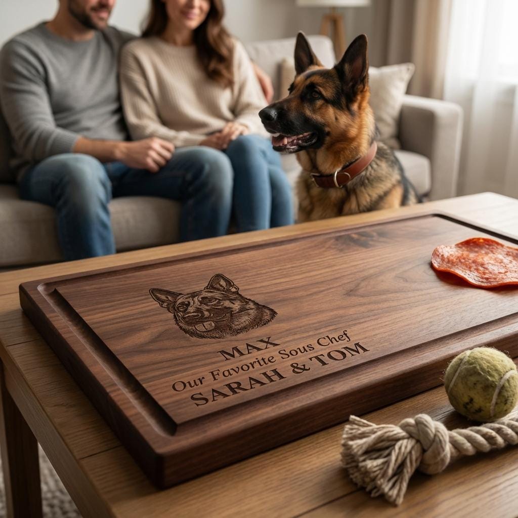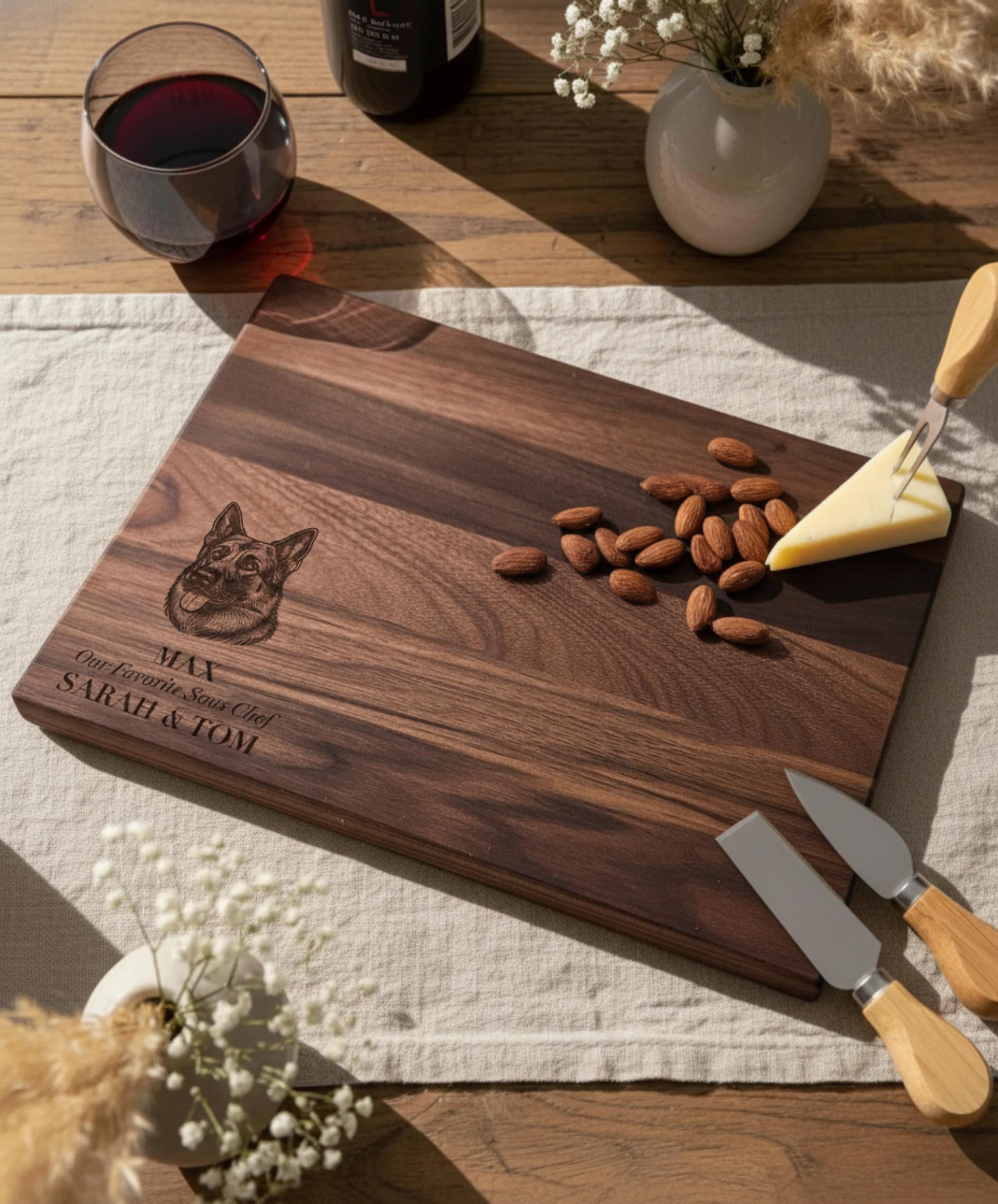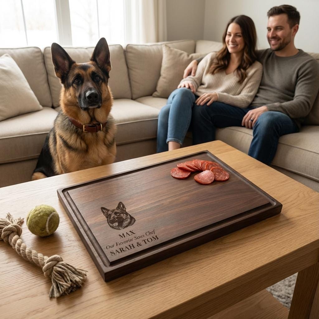 Celebrate your furry friend with this beautifully personalized, laser-engraved charcuterie board! Whether you're a proud German Shepherd parent or adore another breed, this custom piece makes a thoughtful and unique gift.