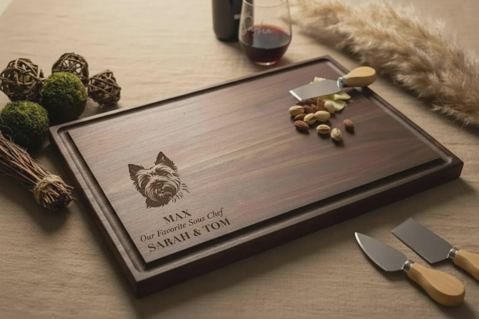 Celebrate your furry friend with this beautifully personalized, laser-engraved charcuterie board! Whether you're a proud White Terrier parent or adore another breed, this custom piece makes a thoughtful and unique gift.