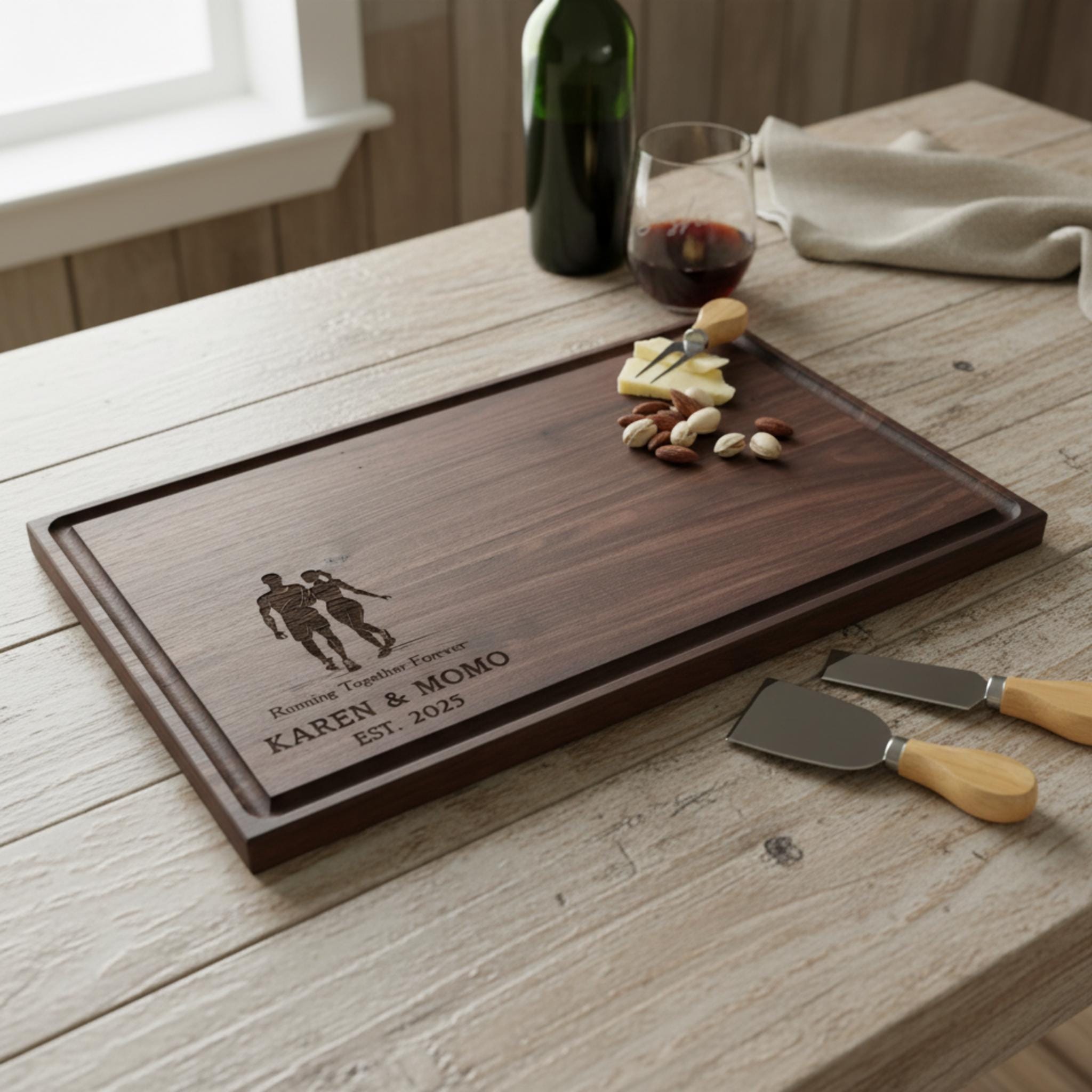 Personalized Cutting Board – Running Couple: Custom Engraved Charcuterie Board, Fitness Motivation, Athletic Couple, Jogging, Marathon Gift