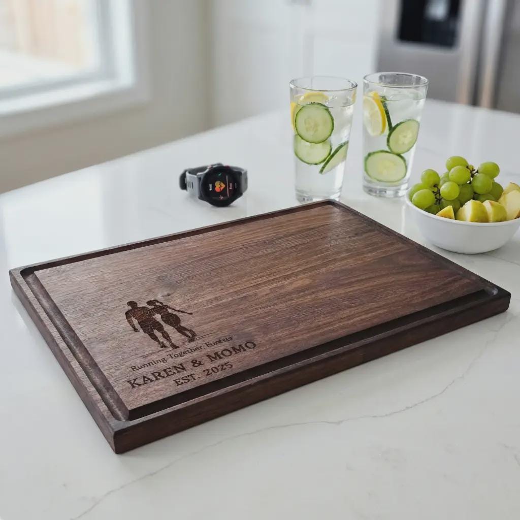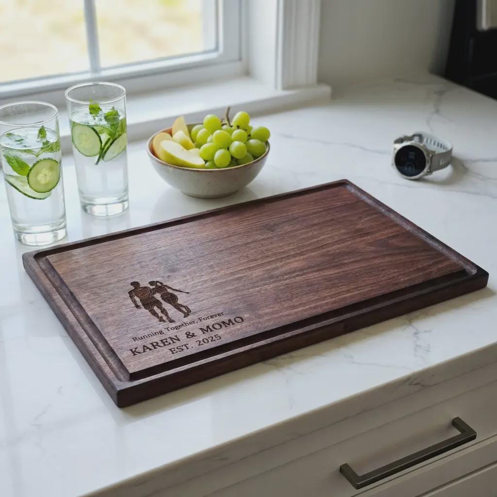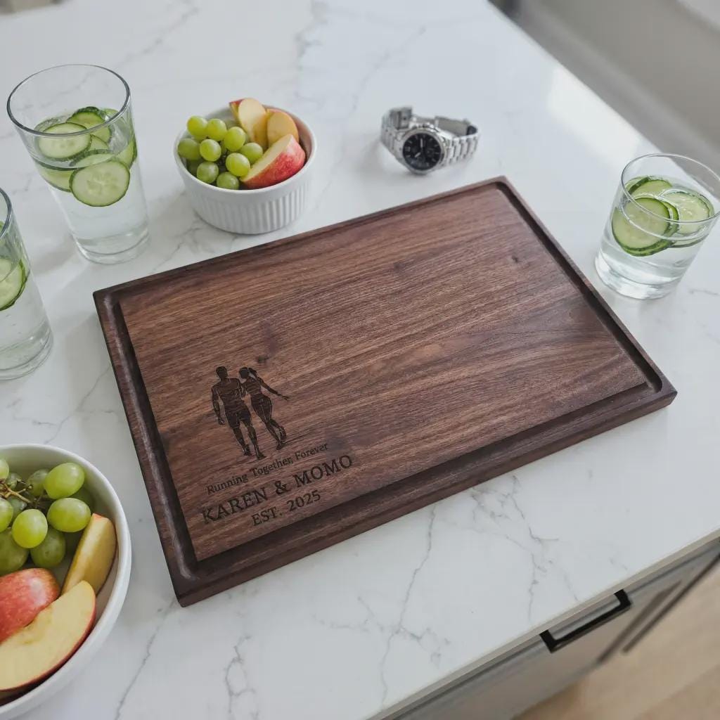 Personalized Running Couple Cutting Board – Custom Engraved Charcuterie Board, Fitness Gift for Athletic Couples & Marathon Runners