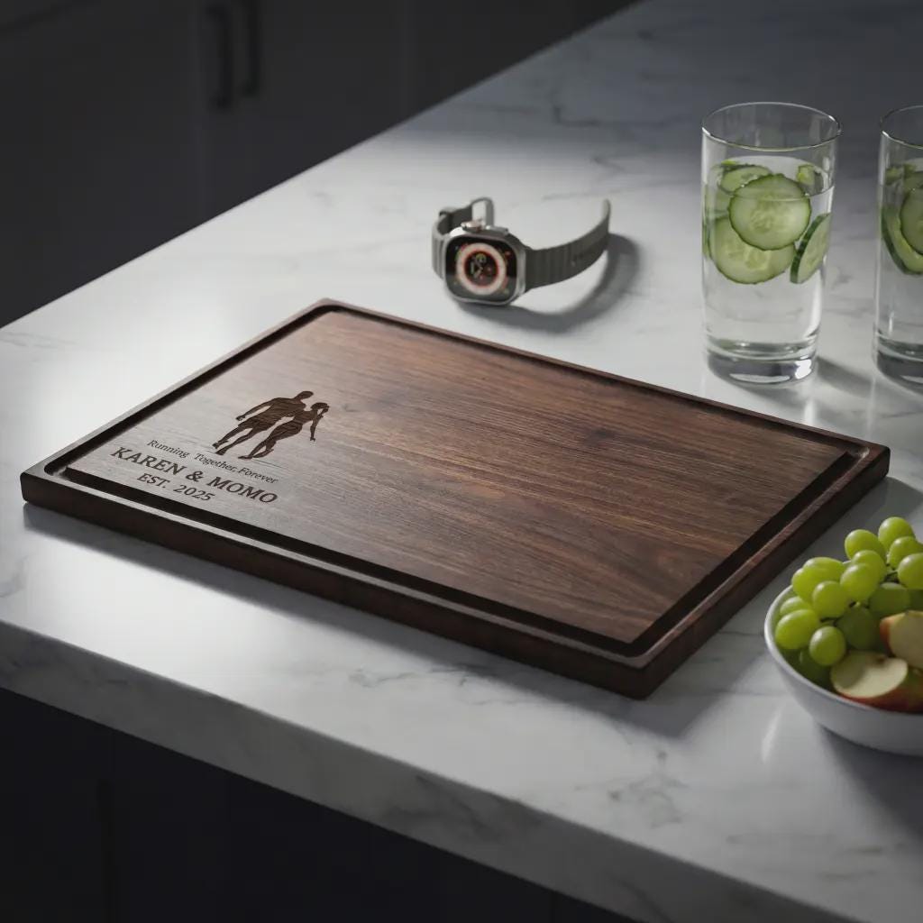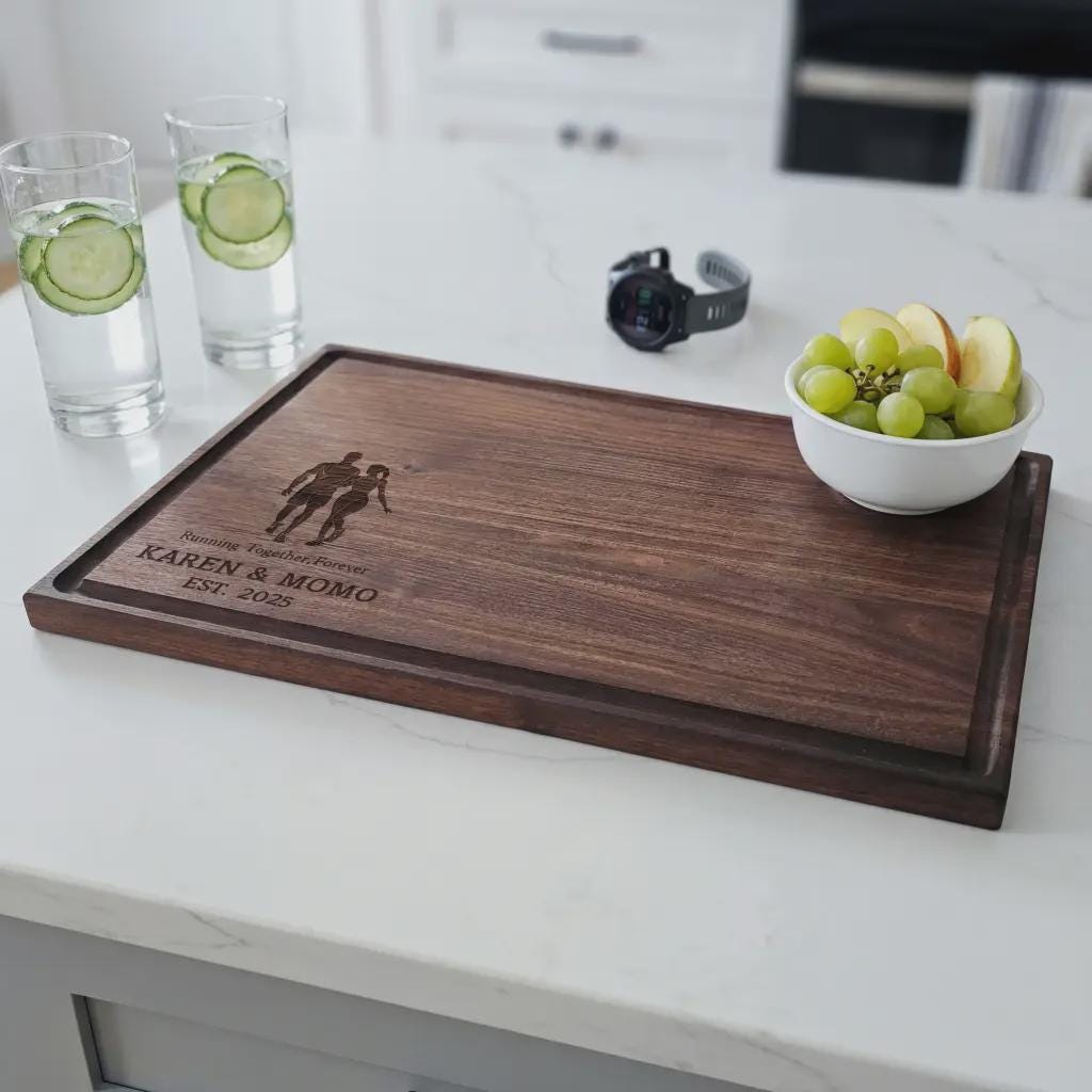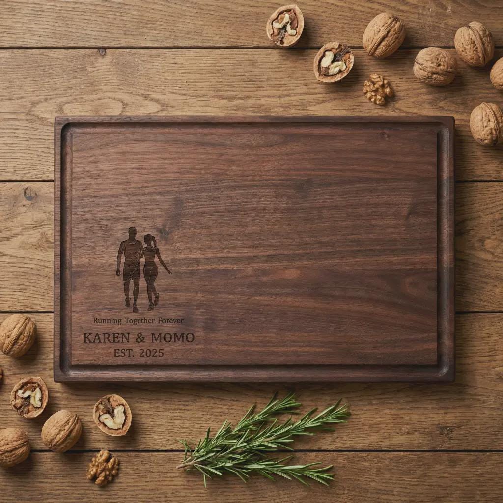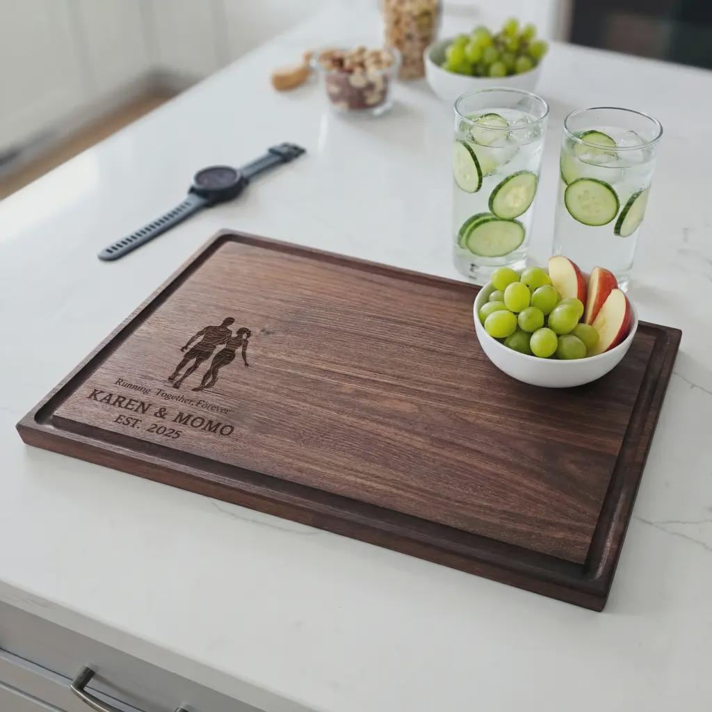Personalized Running Couple Cutting Board – Custom Engraved Charcuterie Board, Fitness Gift for Athletic Couples & Marathon Runners