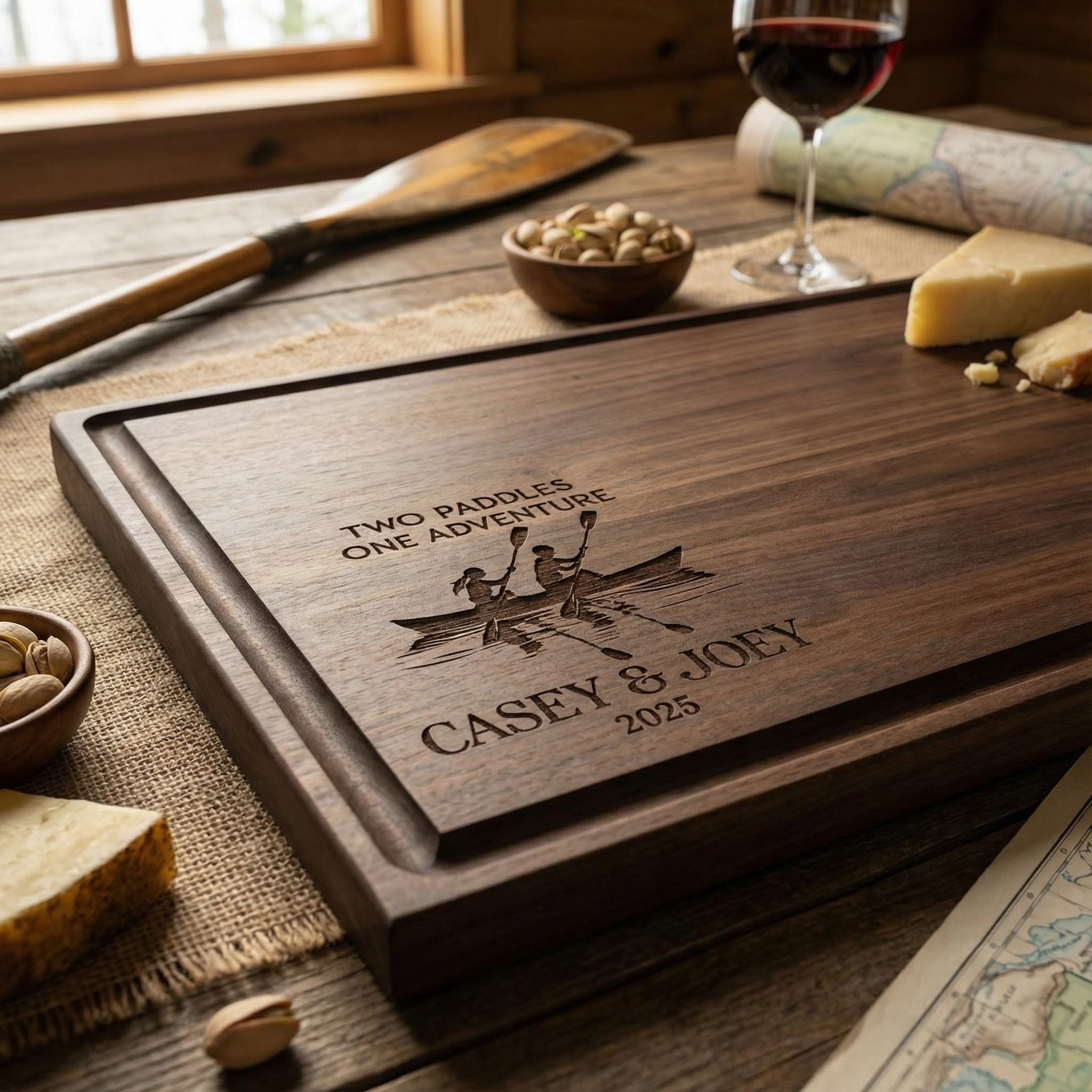 Personalized Cutting Board – Canoeing: Custom Engraved Charcuterie Board, Kayak and Canoe Lovers, Outdoor Adventurers, Paddle Sports Gift